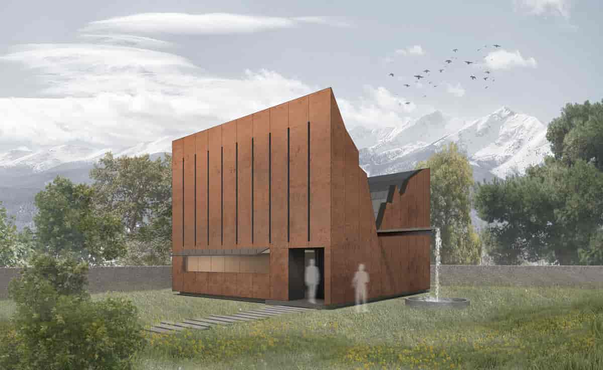 Mevcut yığma tek katlı yapının benzer kullanımı ve ilaveten bir çalışma alanı dâhil edilerek programı genişletilmiş, yüksekliği yorumlanmıştır. Kısmi üst kat yatma ve yaşama alanları ile servislerinin ilave edildiği bir ikametgâh olarak tasarlanmış alt kat ise etüt, çalışma, toplantı için ayrılmıştır. Yapı çeperi korten metal ile giydirilen bir çelik strüktürdür.