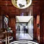 “İlk görüş önemlidir” mantığıyla sizi siyah-beyaz desenli zemine oturan pelesenk bir kutu karşılıyor. Antrenin karşılıklı iki duvarı ve tavan, bu egzotik kaplamanın sıcak oyunuyla içine alırken eve ustaca yerleştirilmiş sanat eserlerinin ilki size merhaba diyor…