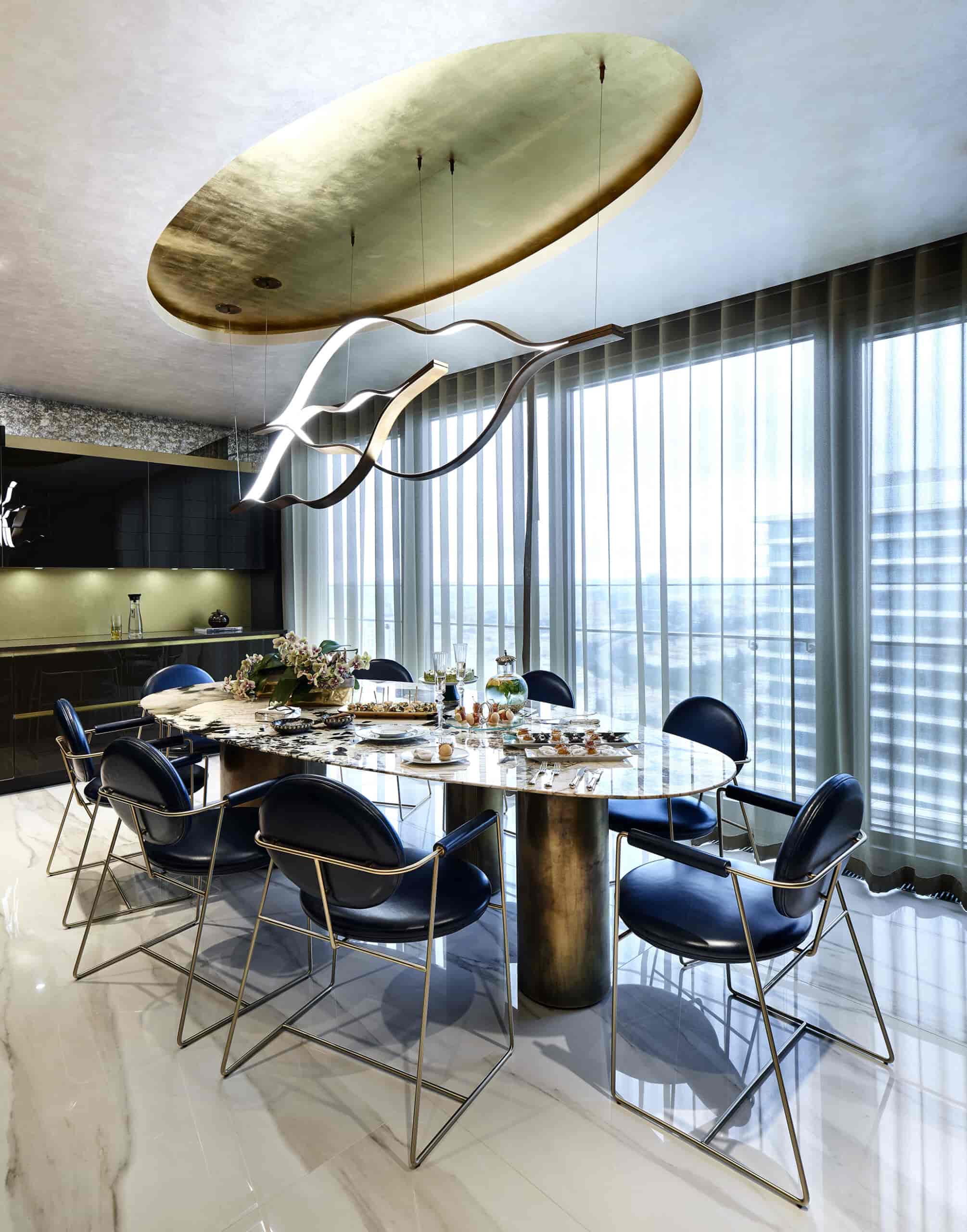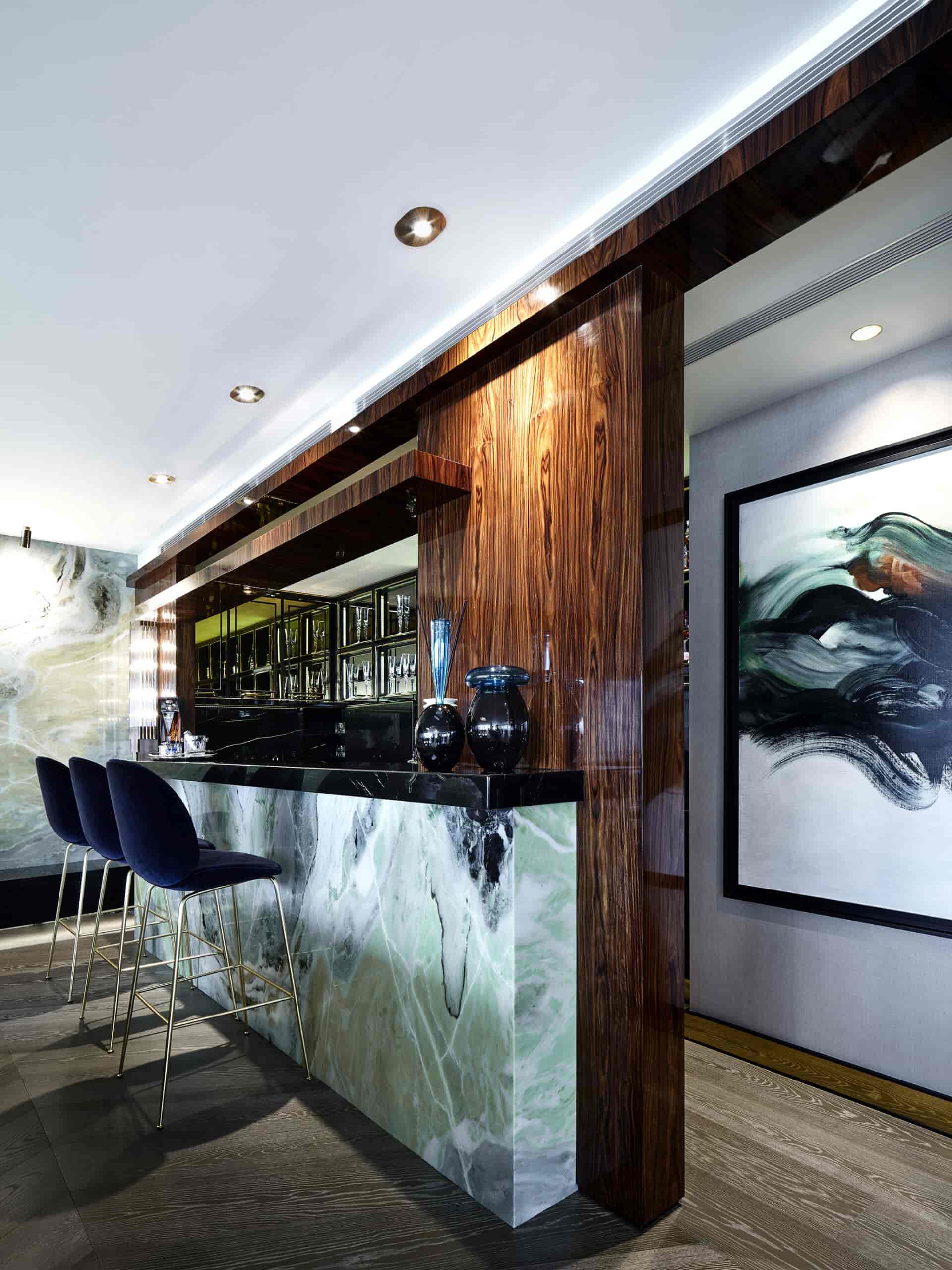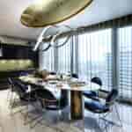 Eski evin vazgeçilmez klasik parçalarını, modern ama sıcak hatlarda eritmek, egzotik ve parıltılı malzemelerle desteklerken yeni bir Beaux Art yaratmak ilk anda gözümün önüne gelen imgeydi..”diyor H.H Zorlu Residence Kuleler’de yer alan yaklaşık 575 m2 lik daire , tamamen boş olarak alınıp, 4 kişilik ailenin kişisel ihtiyaçları doğrultusunda yeniden planlanmış.