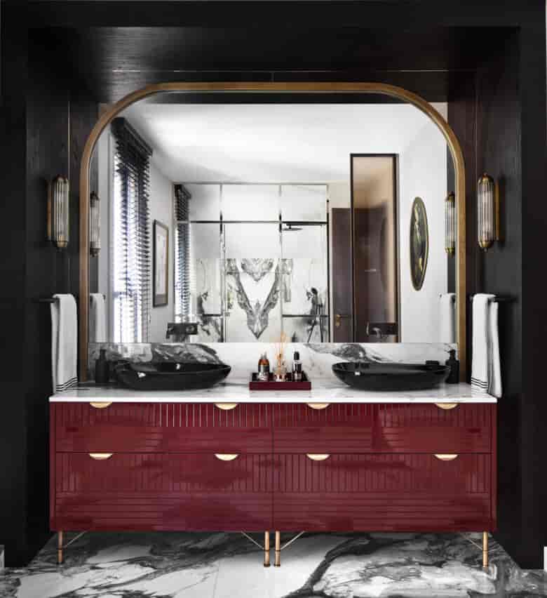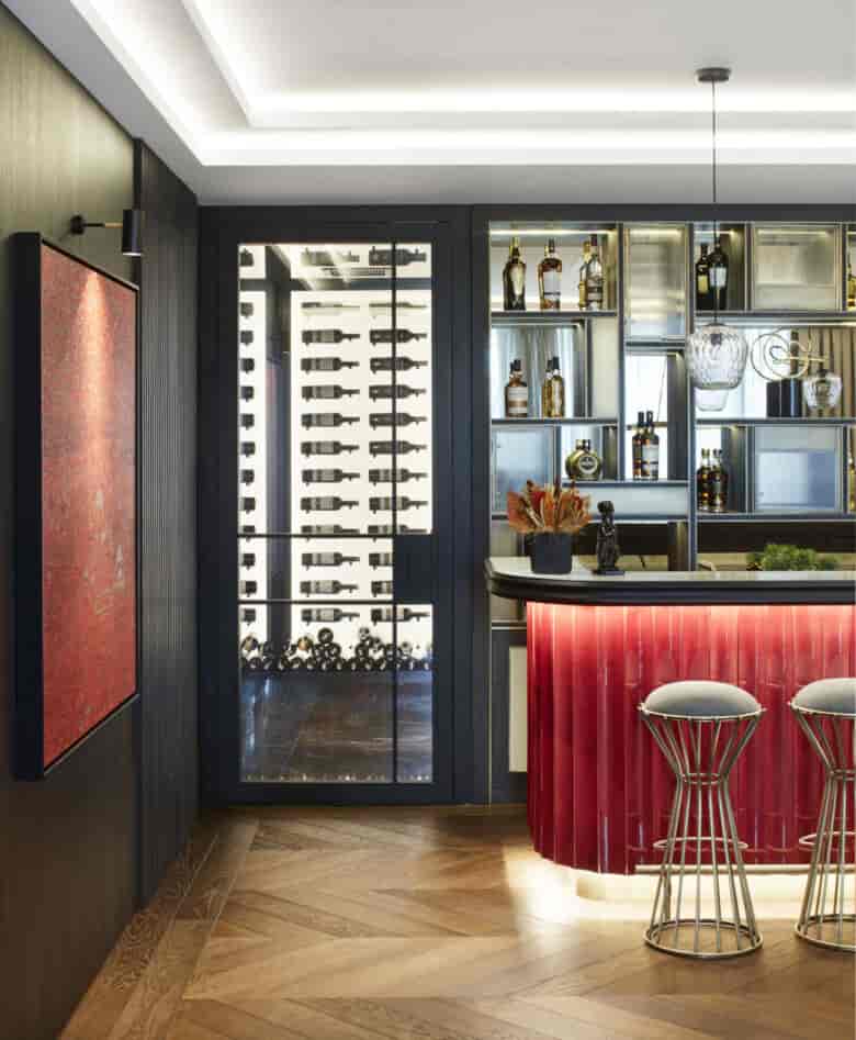 Rumelihisarı’nda konumlanan, yapımı 1880’lere dayanan tarihi köşke Eylül 2019’da taşınılmış. Dekorasyon çalışmalarının Esra Kazmirci Mimarlık tarafından gerçekleştirildiği ev, yaklaşık 1000m2 kullanım alanına sahip. “Giriş katında çocukların yatak odası, yardımcı odası, çocuklar için ortak televizyon ve oyun odası; birinci katta salon, yemek odası, servis mutfağı ve misafir tuvaleti; çatı katında ebeveyn suiti; bahçeye açılan en aşağı katta ikinci salon, mutfak, yardımcı odası, spor odası, hamam ve sauna odası; bodrum katında ise depo odaları ve kazan dairesi mevcut. Eve ilk girildiğinde bakımlı bir evdi ancak ev sahiplerinin tarzına hitap etmiyordu. Ebeveyn banyosu, alt salon, televizyon odası, kavın olduğu bölümler ve çocuk banyoları sıfırdan yapıldı. Merdiven inişini karşılayan holde, ebeveyn banyosunda lavabonun karşısındaki duşta ve şarap kavında yaptığımız karşılıklı sonsuz ayna görüntüsü, evin iç mekanlarını büyütmek ve alanları ferah göstermek için çözüm oldu. Bahçe kapısından girdiğiniz andan itibaren cephe, evin tarihi ruhunu yansıtıyor. Biz de köşkün klasik benliğini içeride biraz kırmayı hedefledik,” diye anlatmaya başlıyor iç mimar Esra Kazmirci ve “Ana evin dekorasyonunun yanı sıra havuz önündeki havuz evi, dışarıda bağımsız yer alan ve çocuklar için oyun evi olan müştemilat komple tarafımızdan yeniden yapıldı. Öncelikle, ‘Böyle bir köşkte yaşamak istesem, kendim için ne yapardım?’ diye düşündüm.