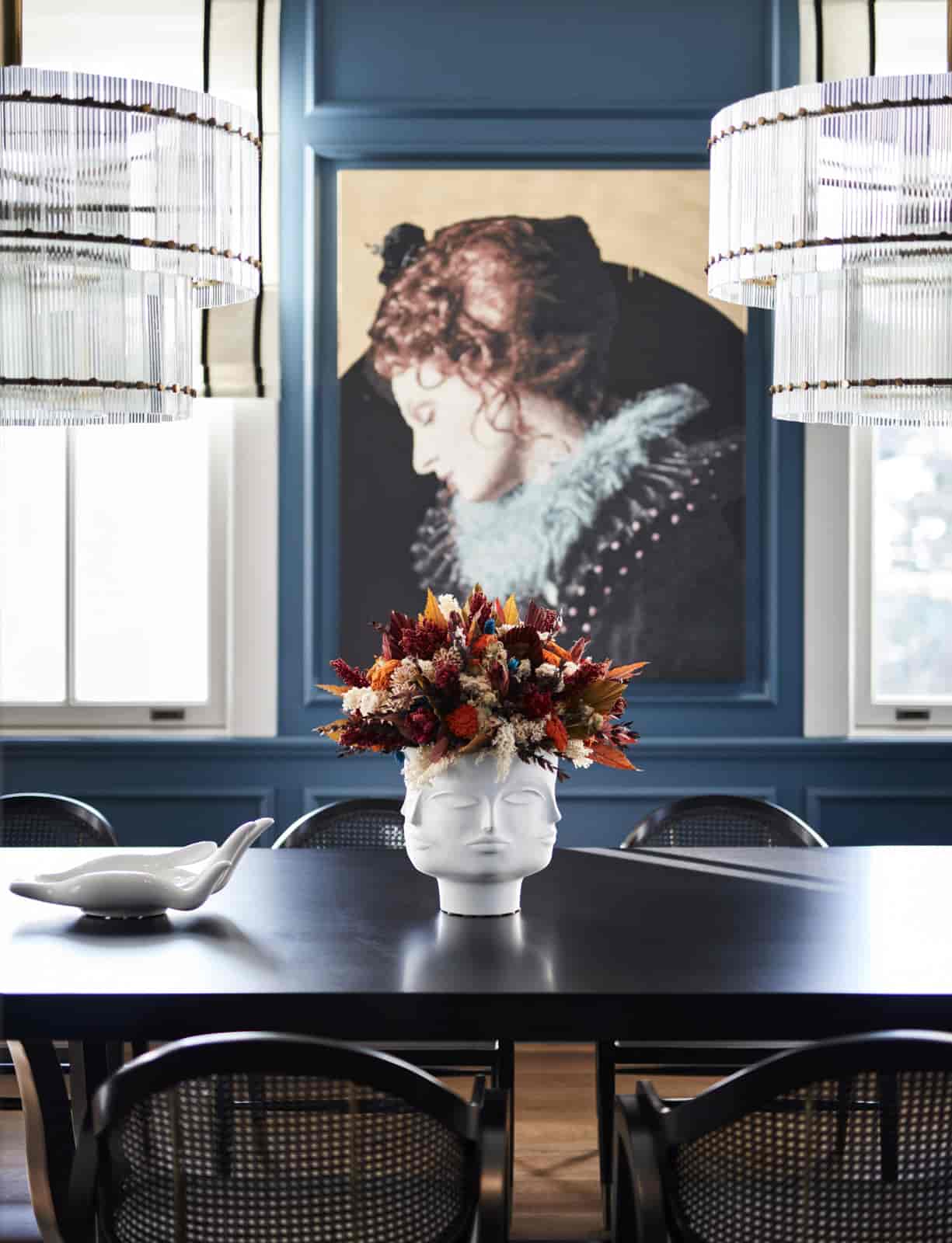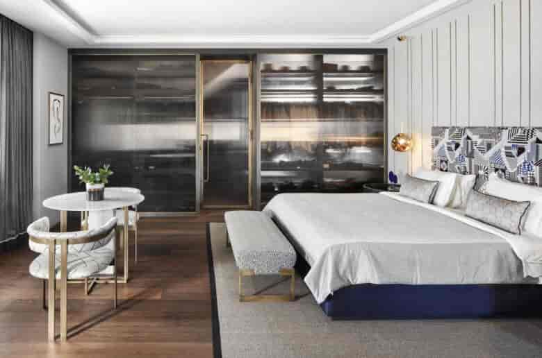 Sonra, ‘Ben nasıl mutlu olurdum?’ sorusundan yola çıkarak ekibimle beraber mükemmelliği hedefledik. Ev sahipleriyle karşılıklı frekanslar da ev dekorasyonunda çok önemlidir. Bunu tutturduğumuzu düşünüyorum ki müşterimiz kendini tamamen bize bıraktı. Bu da tasarımdaki özgürlüğü bize verdi. Öncelikle müşterimizin istekleri doğrultusunda mevcut kurgusuna çok müdahale etmeden fonksiyonelliği ön planda tutarak, görsel karakter ve dekorasyon niteliklerinden de ödün vermek istemedik. Evin her bölümüne hakim farklı detaylar var. Örneğin; evin en beğendiğim kısmı ana salon diyebilirim. Kendi stilim ve Art Deco dokunuşlarını harmanlayarak bir mekan yaratmaya çalıştık. Bütünün genelinde kullanılan boya rengi yerine gri-mavi renk tercih edilerek mekan algısı tamamen değiştirildi,” diye bahsediyor.
