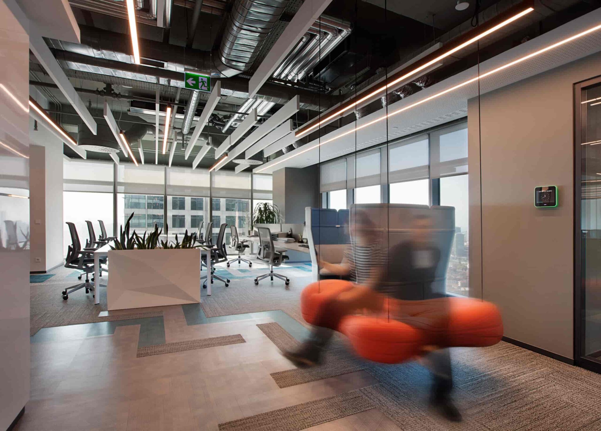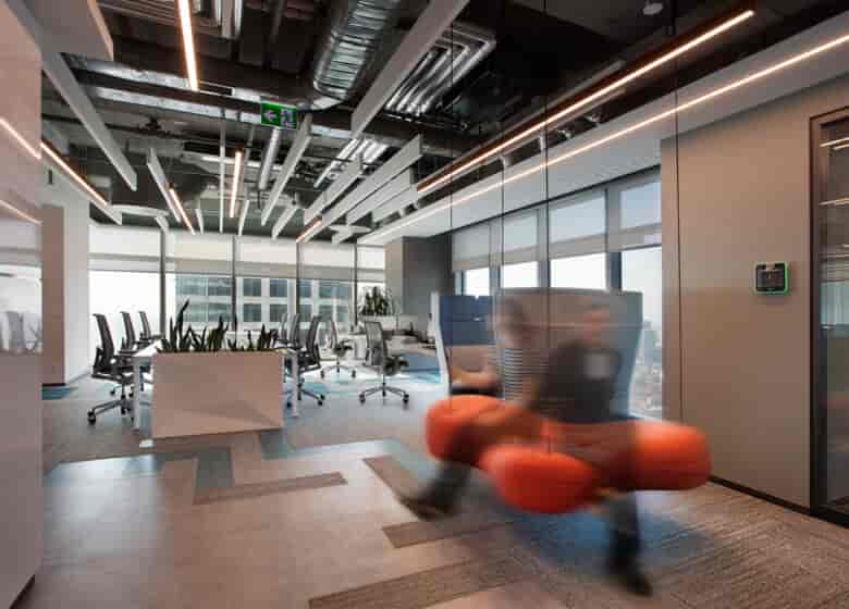 Bununla birlikte, hareket temelli çalışma (activity based working) yaklaşımı ile çalışma masaları dışında, ofisin farklı bölümlerinde çalışabilme esnekliği de düşünüldü. Bu doğrultuda, ergonomi ön planda tutularak, yeni nesil ürünler tercih edildi. Mobilya seçimlerinde sadece oturarak değil, ayakta da çalışma imkânı tanıyan ürünler kullanıldı.