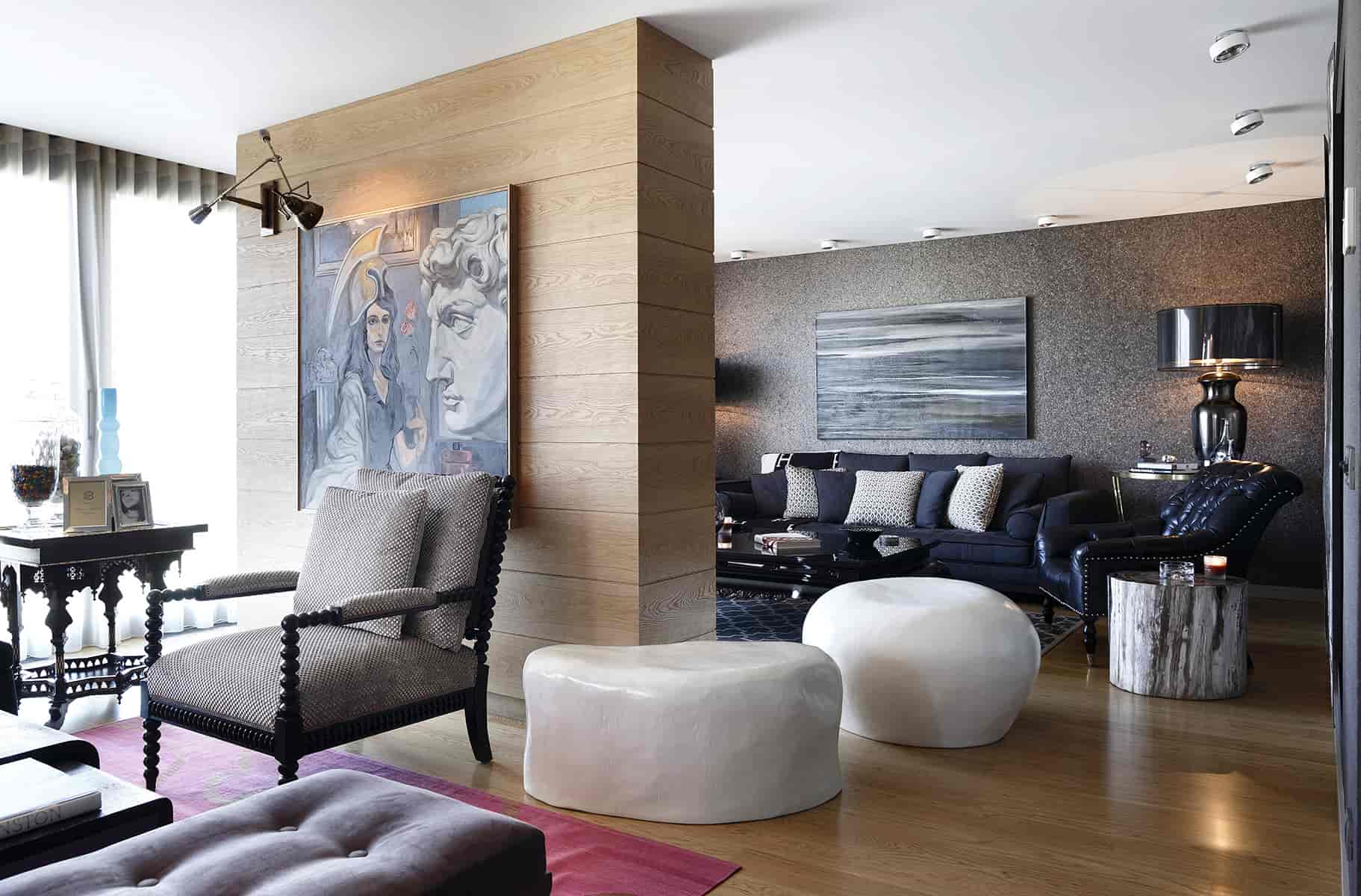Evi ilk gördüğümde zaten belli bir duruşa sahip olan bu dairede genç ve enerjik bir atmosfer düşledim. Ancak hem genç ev sahibimize hem de ailenin diğer üyelerine uygun olmalıydı. Bu nedenle koyu fona sahip, maskulen , modern ve klasik dokunuşların hakimiyetinde, sanat eserleriyle desteklenmiş siyah ağırlıklı bir ev hayal ettim.