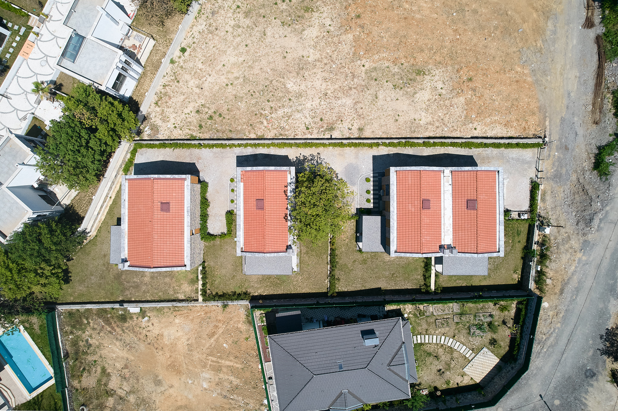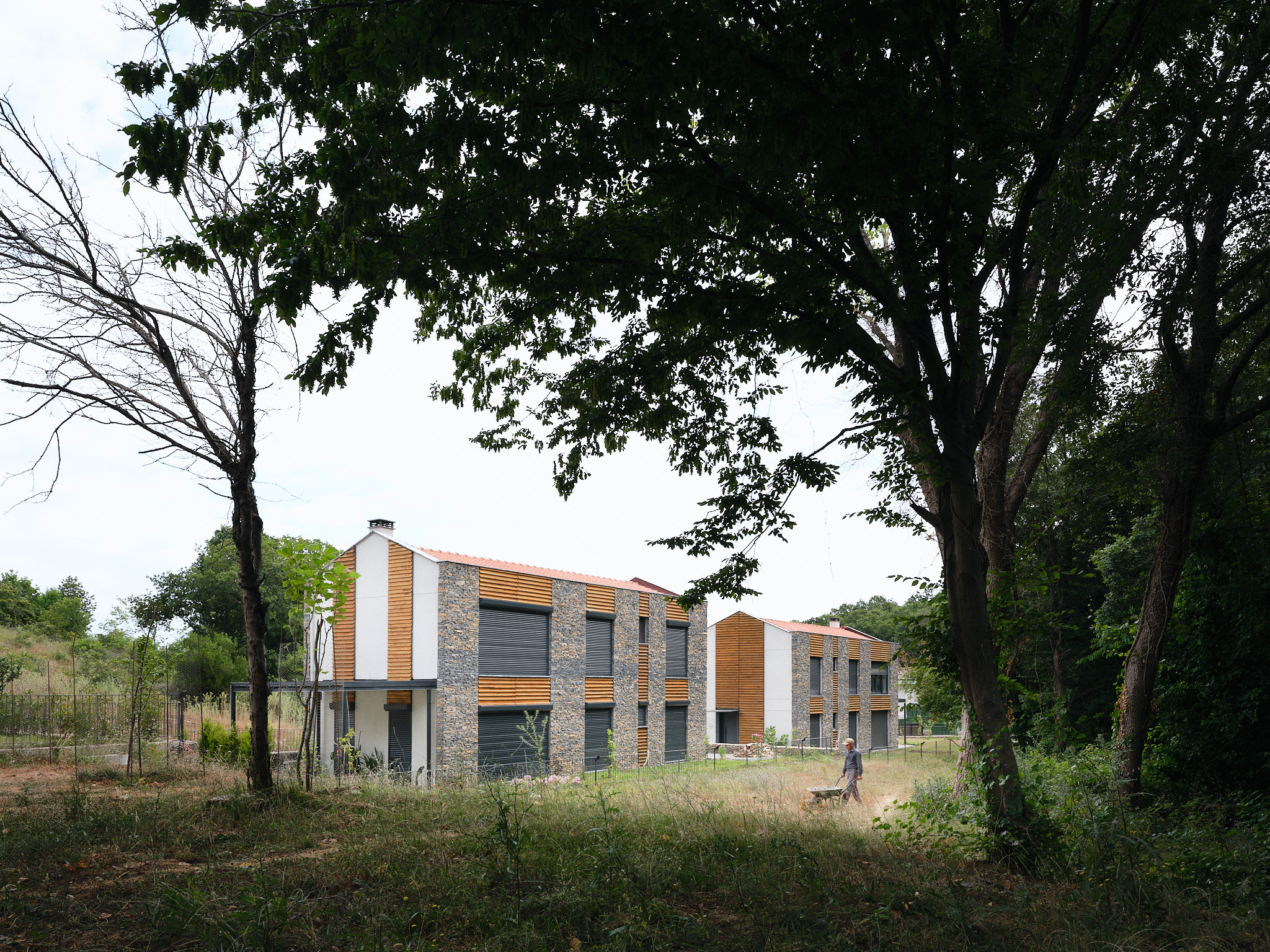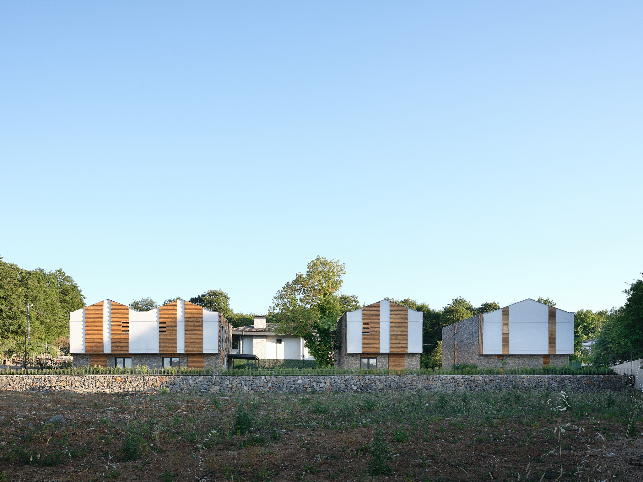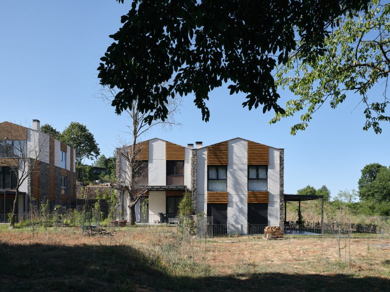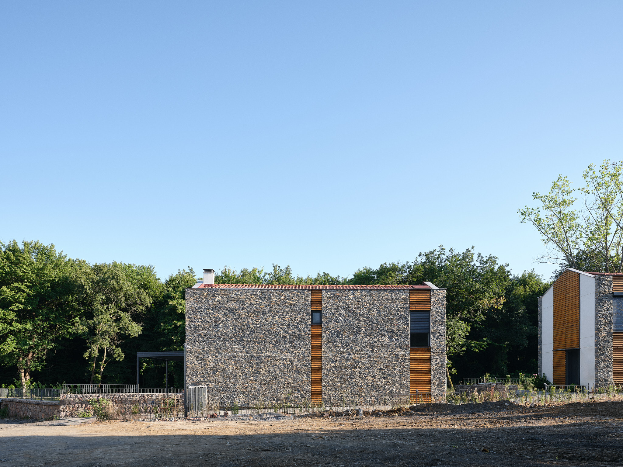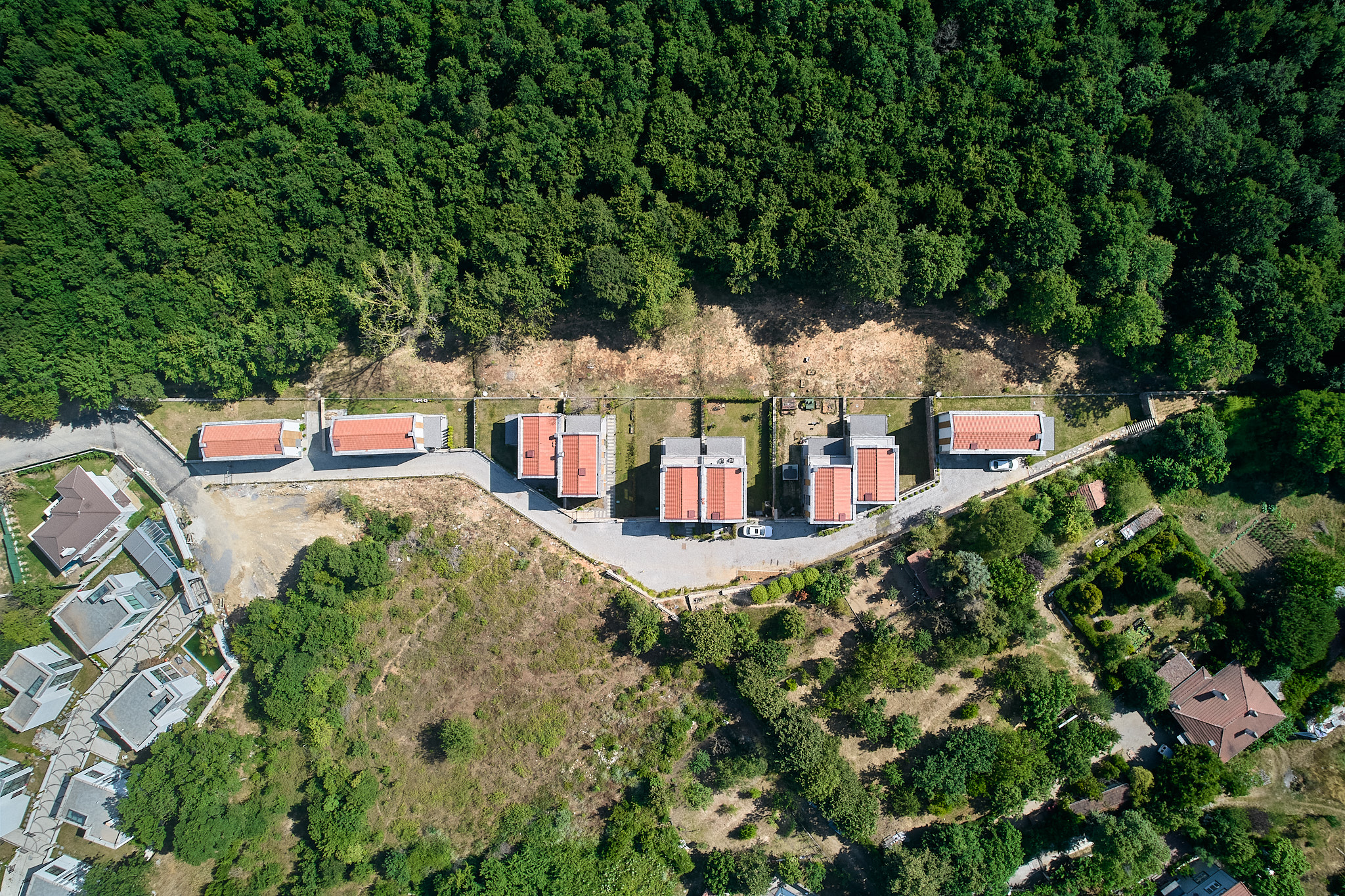 İlk sitedeki tüm villalar ormana bakmaktadır. Arazinin uçlara doğru daralan formu nedeniyle, A tipi villalar, arazinin uzun kenarına paralel olarak konumlandırılmıştır. Buna karşılık, arazinin derinliğinin arttığı orta kısımda, B ve C tipi villalar, uzun kenara dik olarak, ormana yönelmiş şekilde yerleştirilmiştir. Araç erişimi arka tarafta tutulmuş, böylece bahçelerle orman arasındaki bağlantının serbest kalması sağlanmıştır.