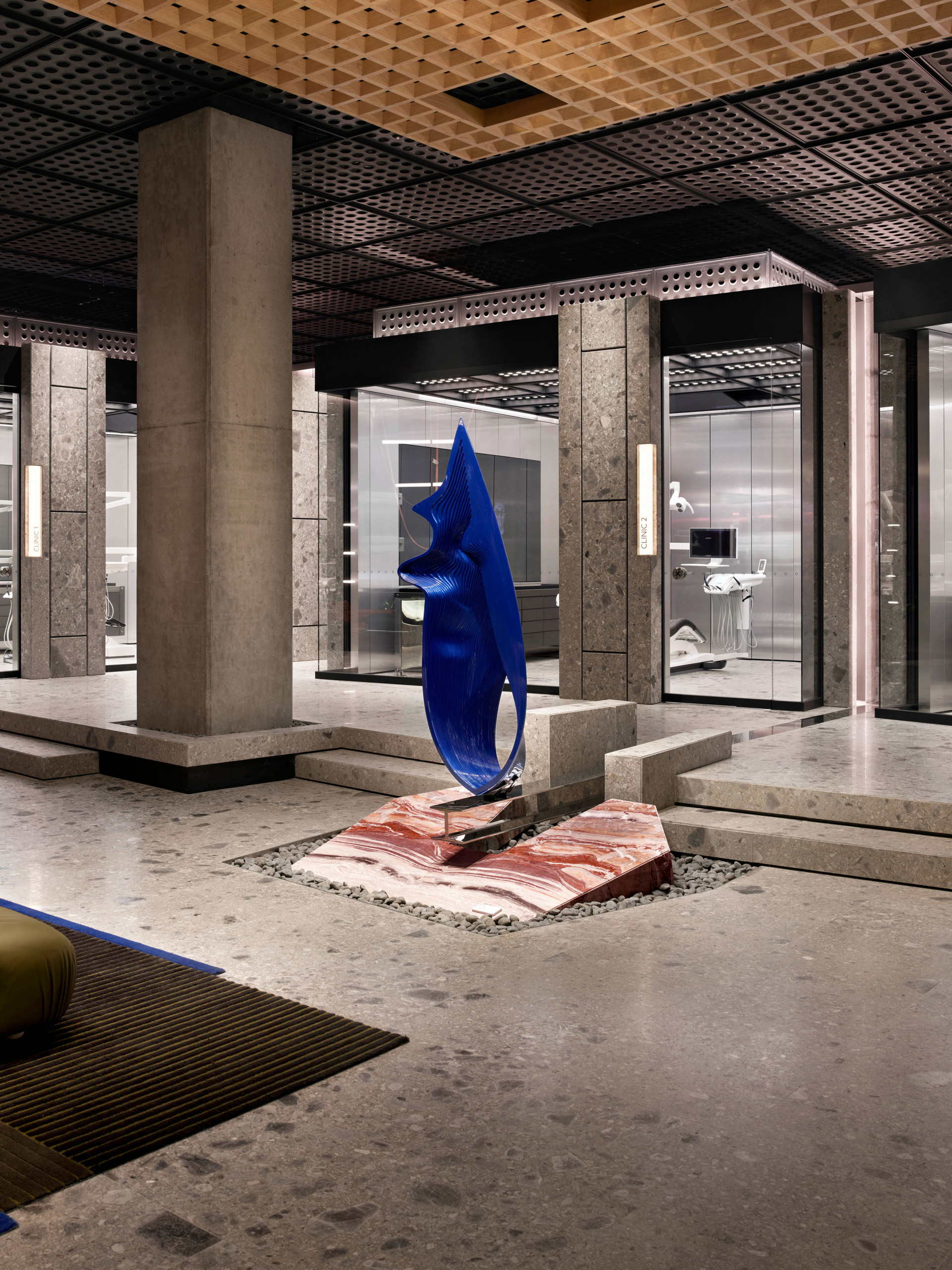 Klinik hassasiyetin ötesine geçerek kullanıcı deneyimi, duygusal derinlik ve sanatla bütünleşen bir yaklaşımı odağına alan tasarım; wellness, bakım ve hospitality ile iç içe geçerek diş kliniğini yeniden tanımlıyor. Tedaviyi insana odaklı bir deneyime dönüştürüyor. Tasarımın amacı, sağlık tesisinin pratik gerekliliklerini karşılarken çağdaş bir sanat galerisi duyarlılığıyla kurgulanan; tasarım ve sanatın ayrılmaz olduğu, daha insana odaklı bir deneyim sunan bir mekân yaratmak.