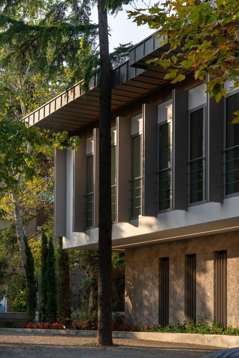 İstanbul’da, bir enerji şirketinin merkez ofisi olarak tasarlanan 5 katlı yapı; bir kısmı açık ofis olarak düzenlenmiş ofis alanları ve dinlenme alanları ile farklı kotlara ve yönlere yerleştirilmiş dört terastan oluşur. Yapı, bulunduğu parselin düzensiz geometrisini, farklı doğrultularda ve ölçeklerde kurgulanmış, kesişen iki kütleyle izler. Çiçeksuyu Sokağı yönüne yerleşen ve yapının ana girişini de barındıran asıl kütle, içine yerleştiği çevredeki ölçeği ve oranları benimserken, alüminyum ve iki farklı doğal taşla kurgulanan cephe ile çinko çatının oluşturduğu kabuğu, kütlenin karakteristiğini belirler. Çatı, parselin sokağa bakan cephesinde yer alan kavak ağacına yaklaştığı noktada oyulur; böylece kavak ağacının büyümesini sınırlandıracak fiziksel durumdan kaçınılmış olur. Asıl kütleye Kuzey yönünde eklemlenen ikincil kütle, ölçeği ve saydam kabuğu aracılığıyla yapının bahçeyle kurduğu ilişkide üzerinden bir ara kesit olma görevi üstlenir. Sokak yönünde, parselde yer alan iki çok yıllık ağacın kısmen gizlediği yapı, yeşille ilişkisini, yapıyı çevreleyen bahçede yapılan peyzaj düzenlemesiyle pekiştirir. Her biri farklı birer plan izi tarif eden altı betonarme ve iki çelik döşemeden oluşan yapının düşey kurgusu, katlar arasında kıvrılan bir çelik merdivenle tamamlanır. Kat planları, yapı programının gereksinimleri doğrultusunda yerleştirilen ofis alanları ile bu alanların aralarına “serpiştirilen” dinlenme alanları üzerinden kurgulanır. Her katta farklılaşan hacimler aracılığıyla yapının tekdüze bir ofis yapısı olmaktan çıkması ve kullanıcılarına bir deneyim çeşitliliği sunması amaçlanır. Yapı, giriş katında, kullanıcılarını ve ziyaretçilerini, yapının kullanım amacına doğrudan atıf yapan ve farklı kömür örneklerinden yerine özel üretilmiş bir bankoyla karşılar. Giriş katındaki bankonun gerisinde toplantı ve yönetici odaları yer alırken, üst kata çıkıldığında, başka bir yönetici odasının daha yanı sıra şirketin yönetim kurulu başkanı (CEO) için tasarlanan odayla karşılaşılır. Kuzey cephesine yerleşen ve bahçeye bakan bu oda, kütüphanesi ve özel terasıyla dingin bir alan tarifler. Bu katta, ayrıca, bekleme alanı olarak belirlenmiş geniş hol, yine yerine özel üretilmiş yönetici asistanı masasıyla tamamlanır. Bu katın yukarısında ise informel toplantı ve dinlenme alanlarının yanı sıra bu alanların kullanımına ayrılan özelleşmiş terasıyla çatı katı yer alır. Çiçeksuyu Sokağı yönündeki girişin altında yer alan 1. bodrum katta, bu kez yol ve Kuzey yönündeki bahçe arasındaki kot farkından yararlanılarak bahçeyle doğrudan bir fiziksel ilişki kuracak biçimde düzenlenen yönetici odaları ile farklı kullanımlara da izin verebilecek bir toplantı alanı konumlanır. 1. bodrum kat ile 2. bodrum katı ayıran kısmi asma kata, yemekhane ve idari birimler yerleşirken; yapının en alt katı olan 2. bodrum kat, betonarme perde duvarları ve açıkta bırakılan betonarme kirişleriyle kendine has bir kimlik edinen, 5,60 metre yüksekliğindeki açık ofis hacmini tarifler. Betonarme kirişlerin arasına yerleştirilen çatı pencereleriyle açık ofis alanı ve yemekhane için doğal aydınlatma ve havalandırma sağlanır. 2. bodrum katta, aynı zamanda, yine açık ofis hacmine doğal aydınlatma ve havalandırma sağlayan ve yalın bir çelik konsol merdivenle yukarısındaki bahçeye bağlanan bir de teras bulunur.