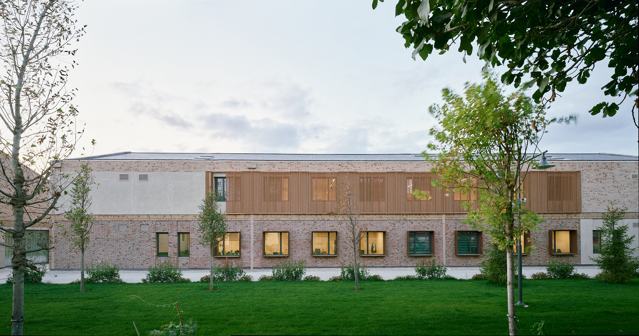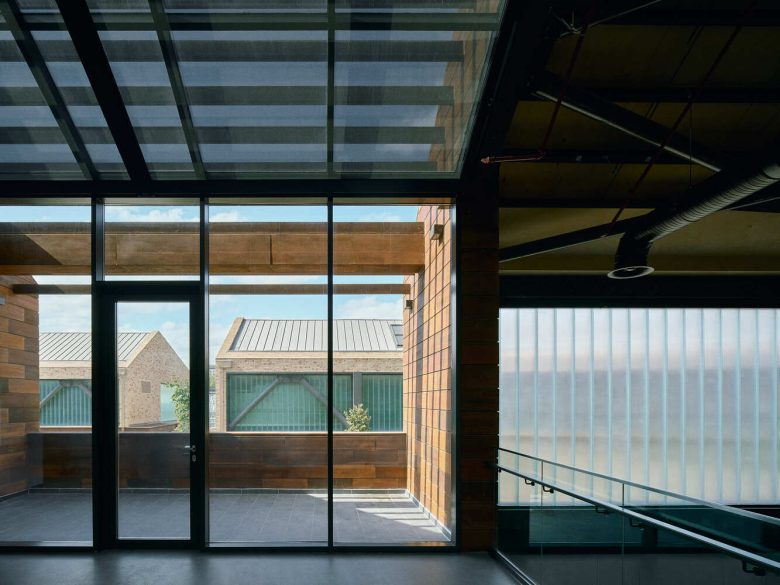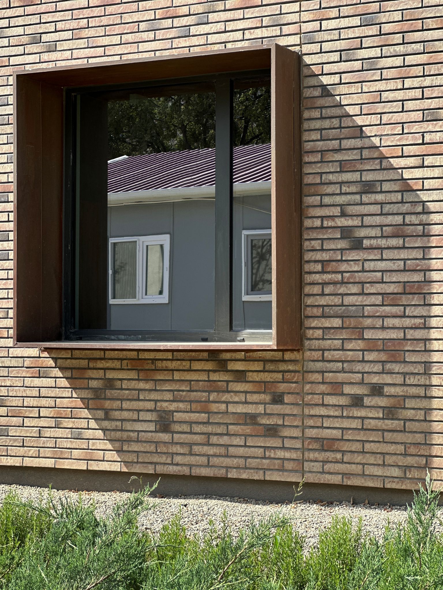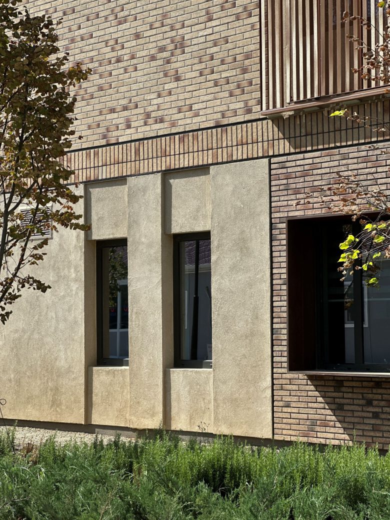 Yapıların uzun ön ve arka cepheleri, iki farklı cephe tasarımına sahiptir. Birinde üst kattan konsol yapan balkonlar, uzun profilitler, sağır tuğla ve sıva yüzeyler, giriş saçakları ve dar uzun pencereler hakimken; diğer cephede alt katta modüler kare pencereler ve bu pencereleri çerçeveleyen corten söveler, üst katta ise açılır-kapanır mikro genişletilmiş boyalı metal mesh güneş kırıcılar dikkat çeker. Yapısal çeliğin taşıyıcı sistem tasarımından kaynaklanan ilk, orta ve son akslara her iki katta birden çelik çaprazlar yerleştirilmiştir. Bu karakteristik taşıyıcı elemanlar açıkta bırakılarak cephe tasarımında baskın birer mimari unsur olarak değerlendirilmiştir.