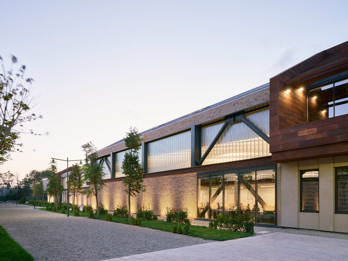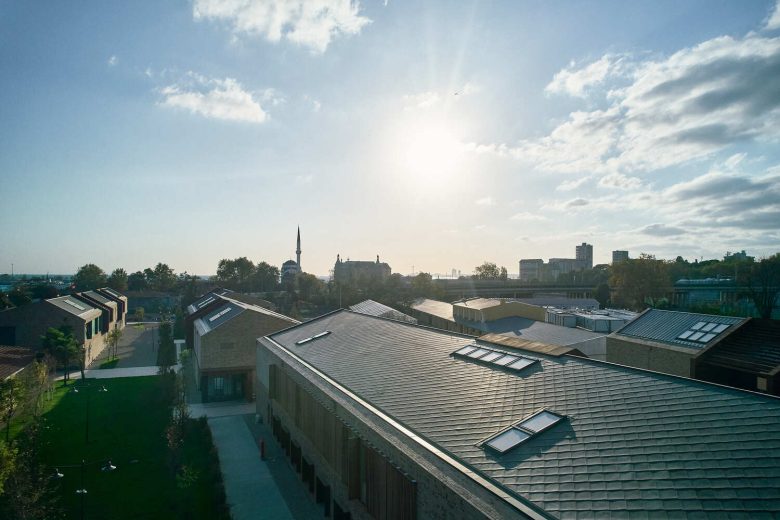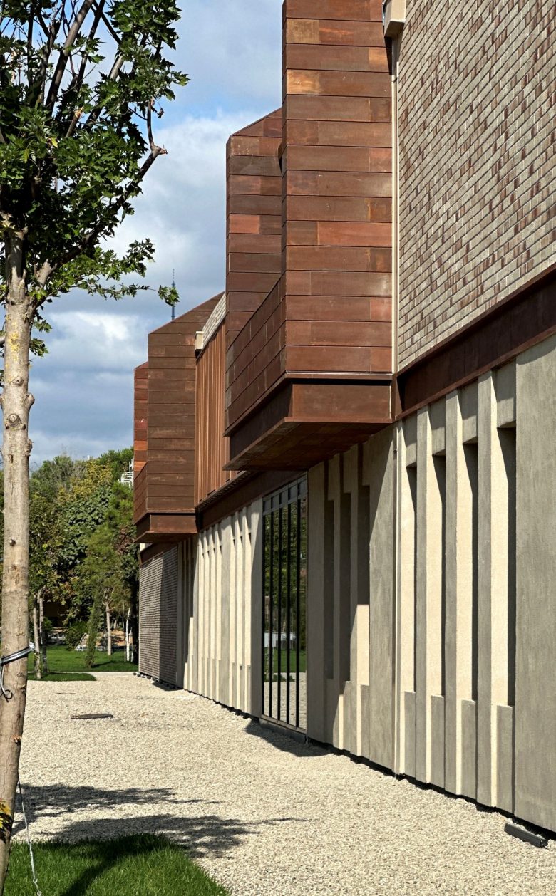 Aynı tasarım diliyle tasarlanan bu beş adet çelik strüktürlü yapı, farklı aks sayılarından oluşur ve dolayısıyla uzunlukları birbirinden farklıdır. Farklı kitle ve malzeme kombinasyonlarından oluşan modüler yapı dilimleri, gün ışığı ve iç mekan ihtiyaçlarına göre yan yana gelerek yapıları oluşturur. Tüm yapıların ortak karakteristiği, corten giriş saçaklarının kalınca bir kat silmesine dönüşerek balkonlara kadar uzanması ve bu sayede farklı malzeme ile doku kombinasyonlarına altlık oluşturmasıdır. Yapılar, alanın hafızasında var olan özgün dokular, renkler ve malzemelerden esinlenen bir cephe kompozisyonuna sahiptir. Tuğla, dokulu sıva, corten, profilit (U-glass), genişletilmiş boyalı metal mesh, titanyum-çinko gibi ana malzemeler ve bunların renk-doku türevleri, uzun yapı cephelerinde derzlerle birbirinden ayrılarak farklı yüzeyler oluşturur.