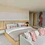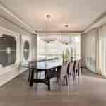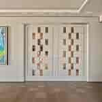 Salon, yaşam alanının diğer bölümlerinden iki geniş sürgü kapı ile koparıldı. Mutfak ve TV Odası, ortak yaşam alanlarından özel alanlara ilerlerken evin her iki kanadında birer geçiş mekanı oldu. Hizmetli odaları, çamaşır odası, teknik oda, depo, WC ve banyo, bu iki koridorda sıralanırken yatak odaları da bu koridorlardan giriş aldı. Ebeveyn yatak odası, kendi içinde bir suit olarak düşünülerek giyinme odası ve ebeveyn banyosu ile birlikte planlandı.