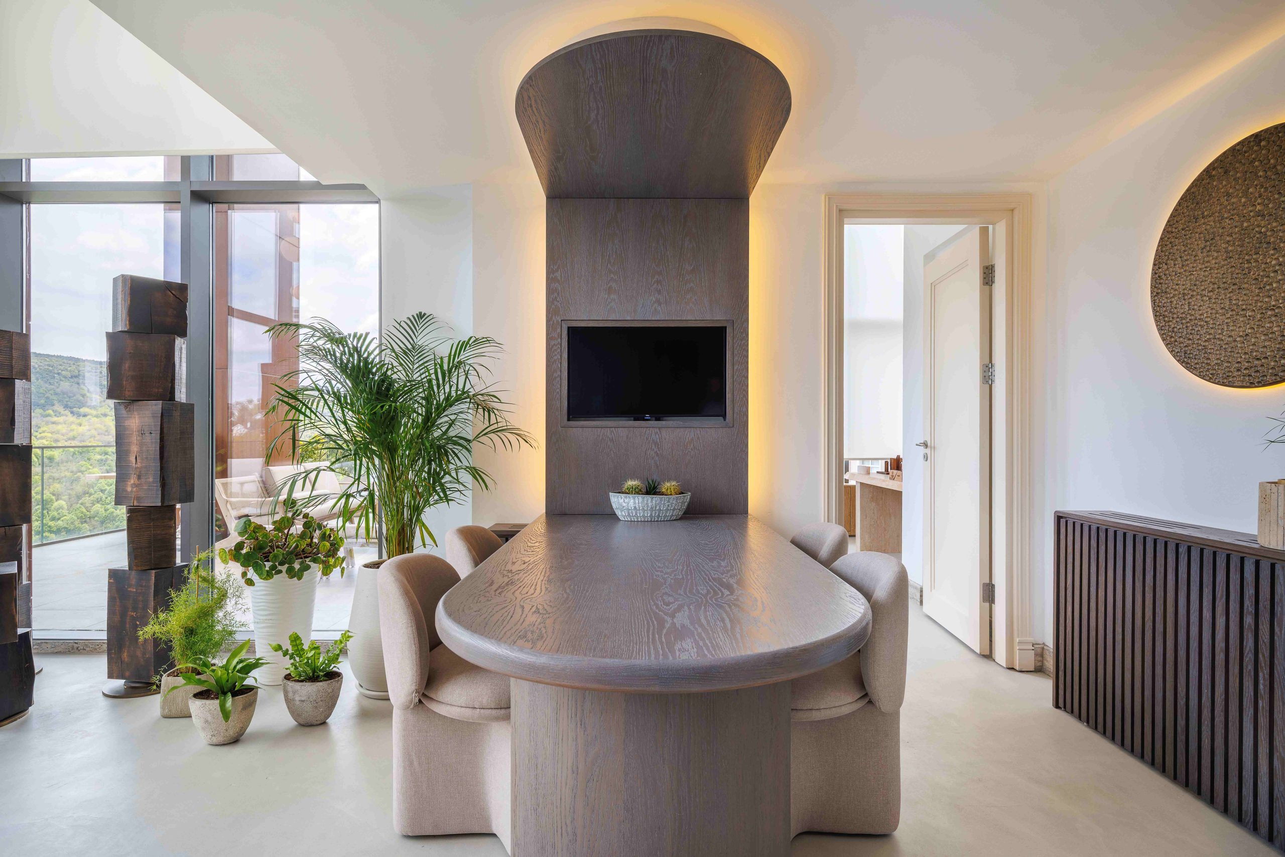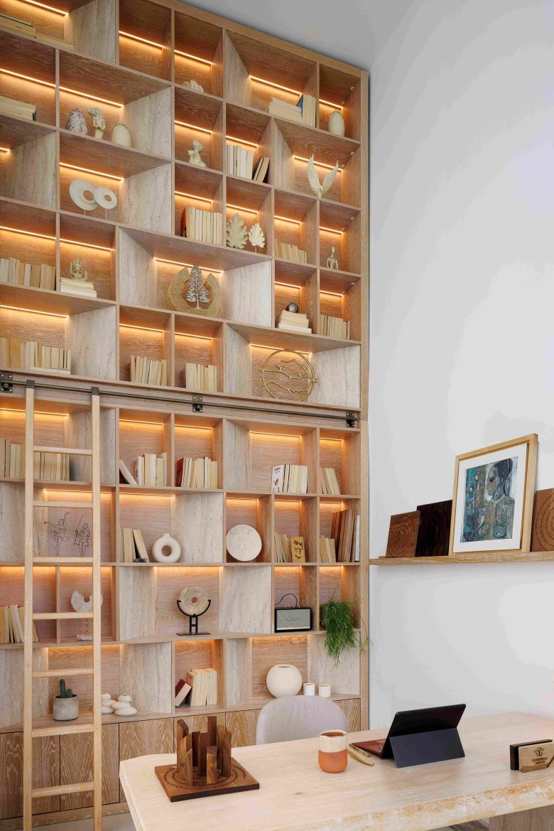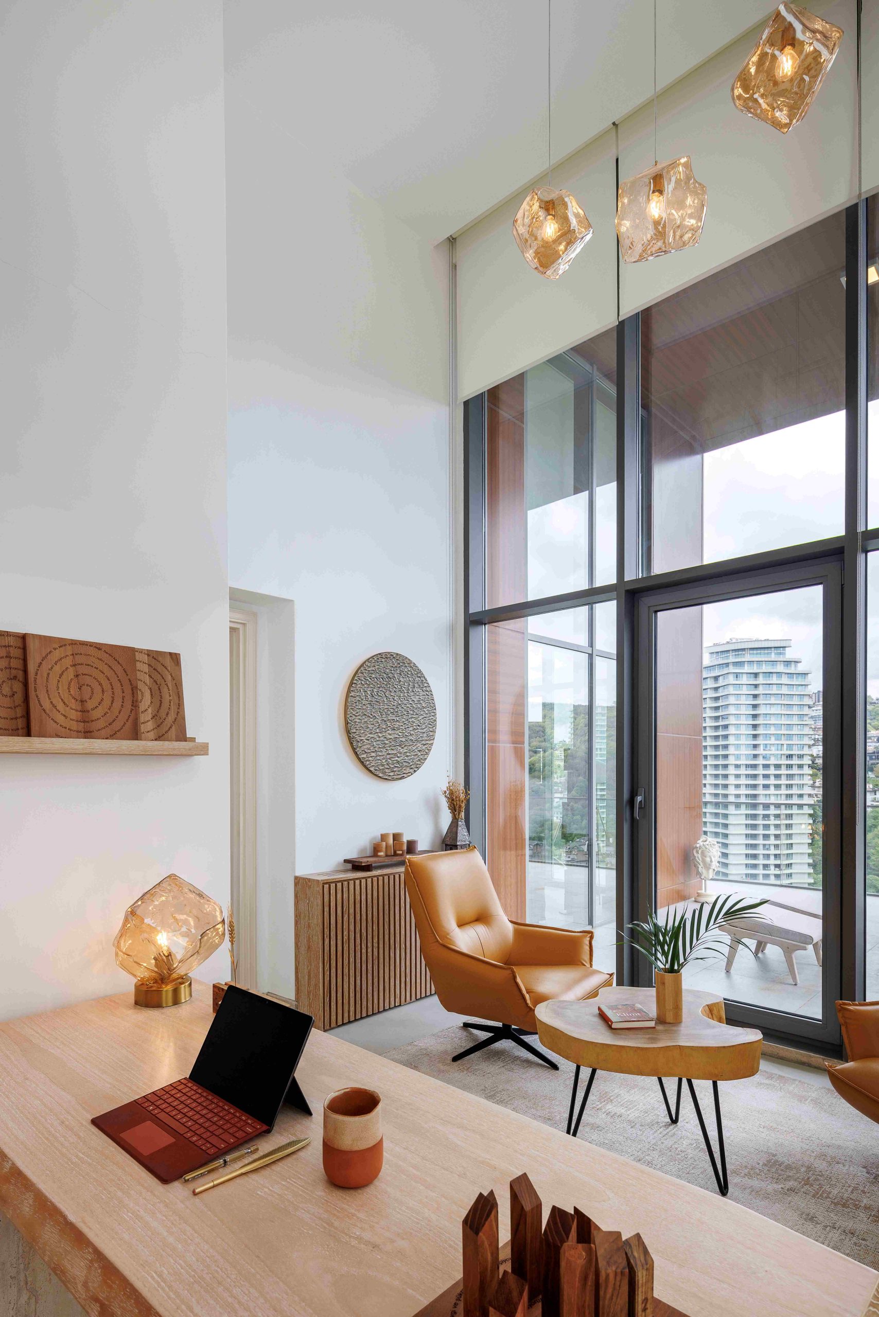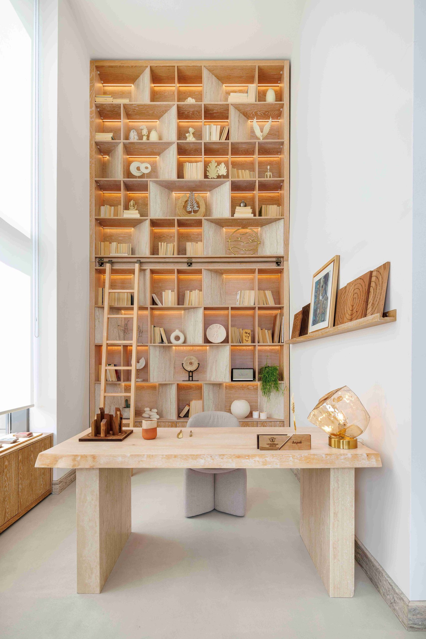 Merkezde, ışık, gölge, renk ve dokuların birbiriyle yarışmadan, kendini gösteren bir bütün halinde kalması hedeflenerek hassas bir dengeleme yakalanmış. Bu yaklaşım, dingin ve ferah bir mekân enerjisi yaratırken, kullanıcıların kendilerini rahat ve ev sıcaklığında hissetmelerini sağlıyor, aynı zamanda profesyonel bir ortam deneyimi sunuyor.