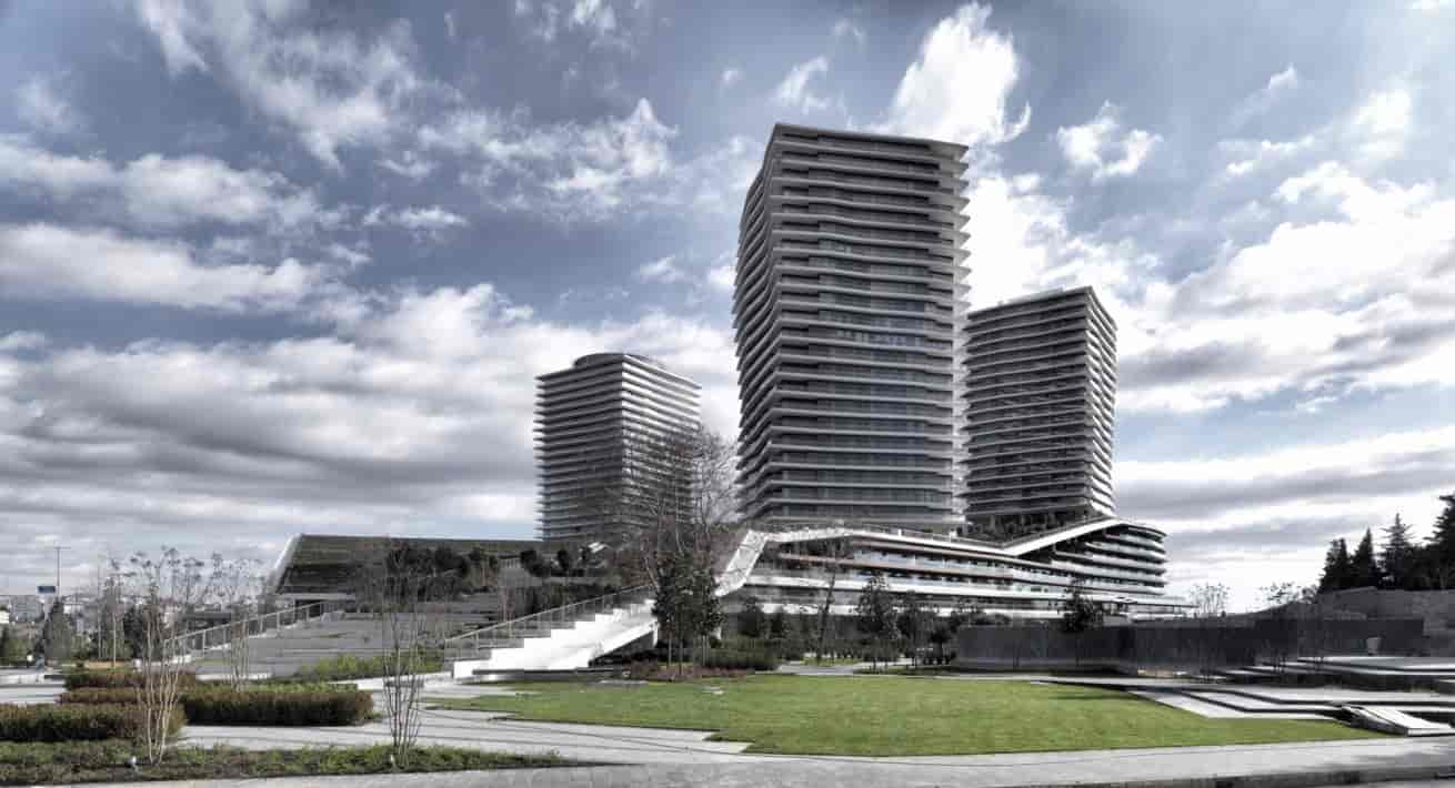 The highly professional Performance Arts Center of 2300 people capacity has an entrance amphi as a continuation of the Public Square and the Piazza.The terrace flats under the shell have large gardens and terraces enjoying the Bosphorus view. The rest of the residential units form three identical towers, the fourth of which is a hotel. One of theprominent goals of the project was to enhance public life in a completely private land by the help of free porosity and outer space articulations.