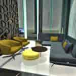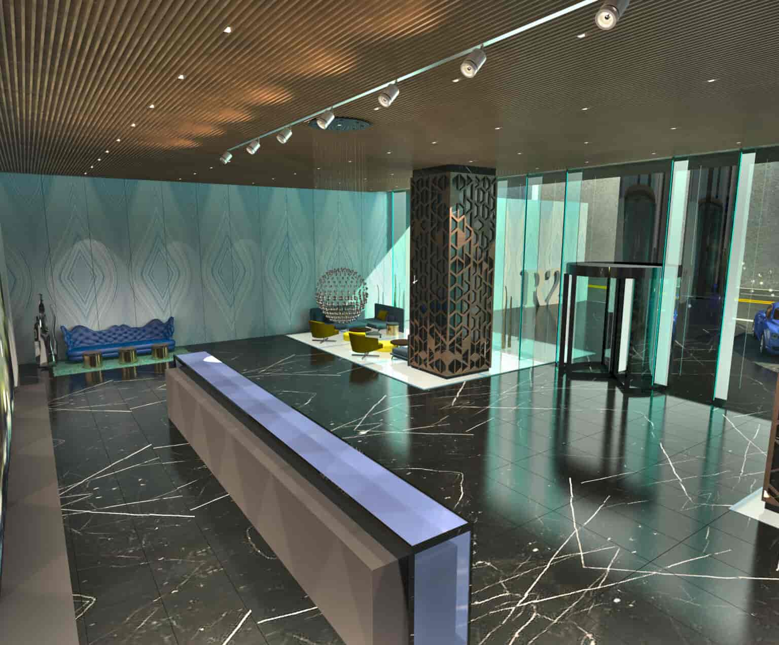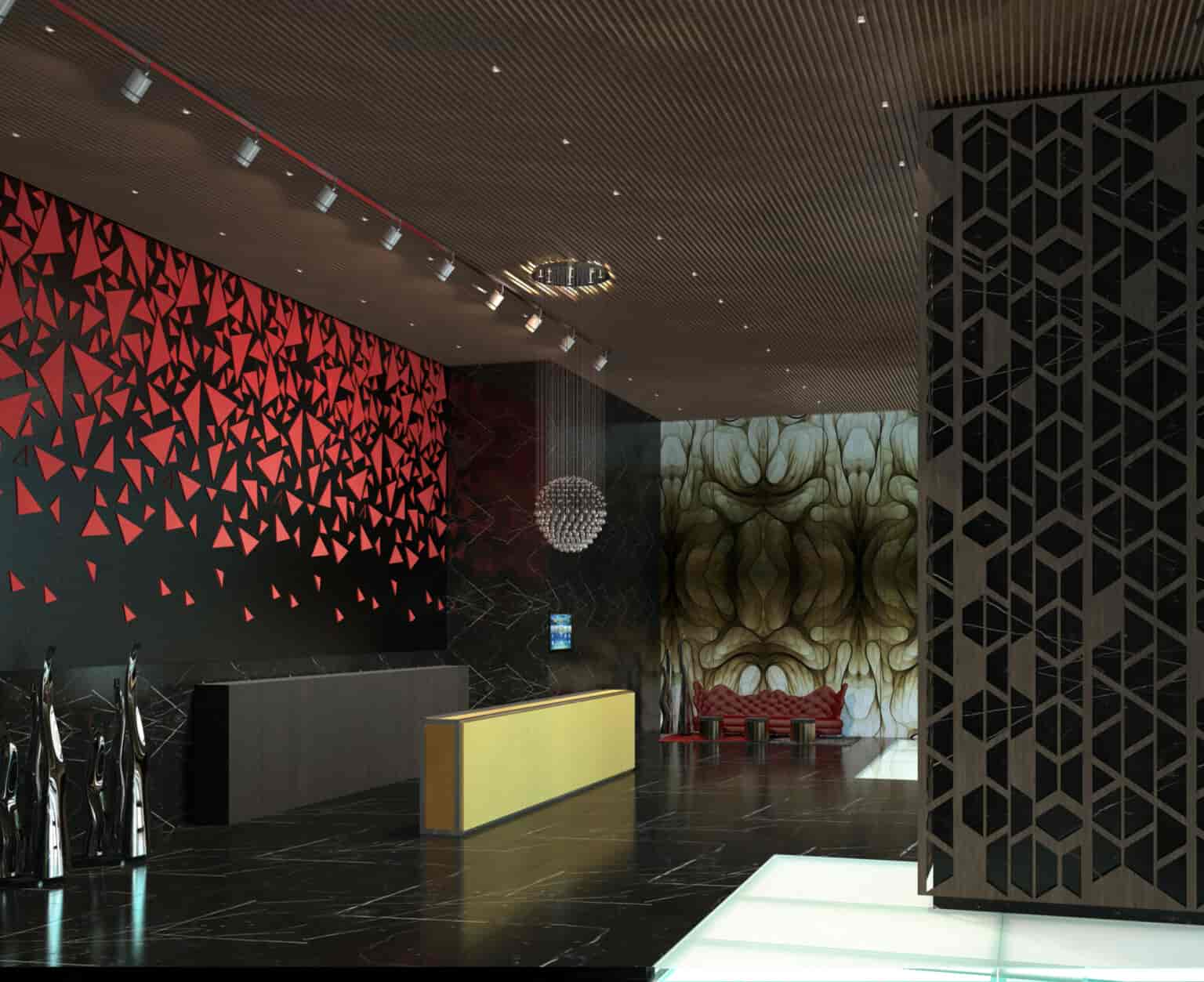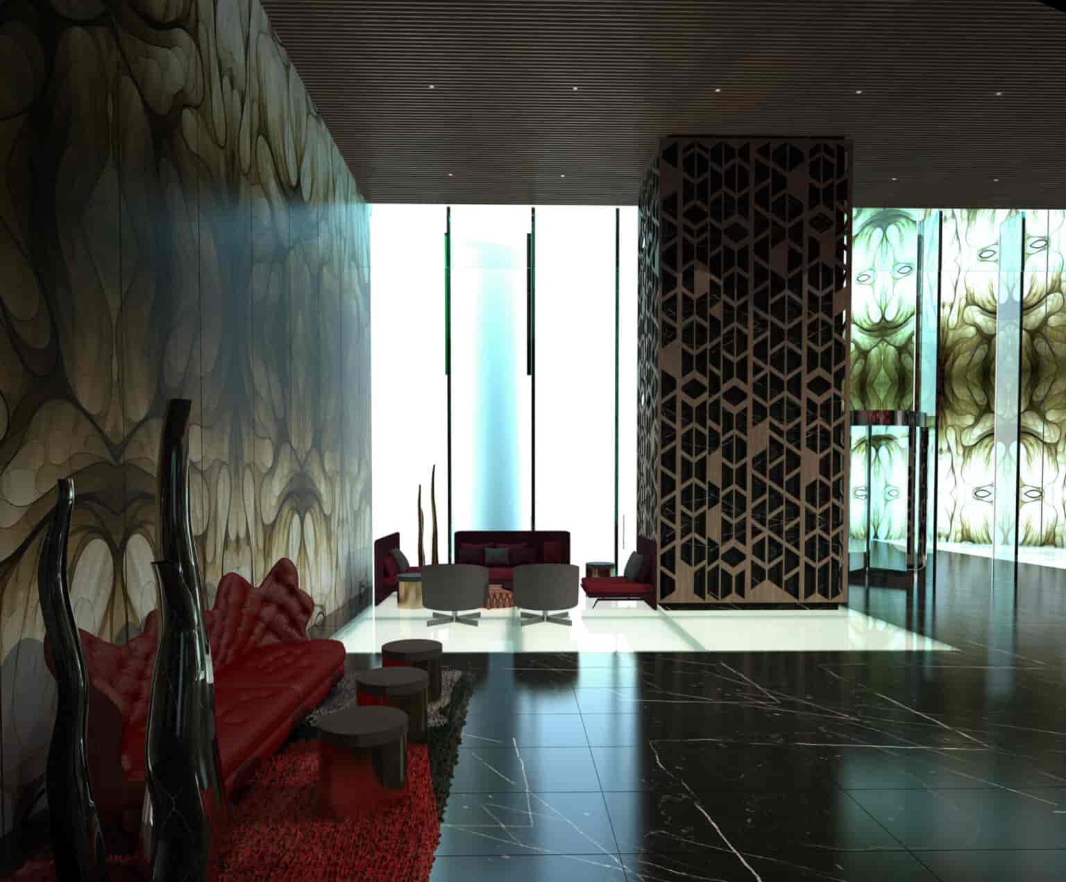 Zorlu Residence’da etkili geometri ve renk kullanımıyla, mekandaki yükseklik algısı çarpıcı bir şekle büründü. Tavandan zemine kadar uzanan alışılmadık aydınlatma kullanımı da mekandaki ölçek algısını tanımlayan bir diğer unsur oldu. Duvarlarda ve zeminlerde tekrar eden desenlerin kullanılması ve bitişik katlarda yine benzer renklerle oluşturulan bütünlük, her kata bir sanat eserinin değerini katarken, işlevsel alanları da net bir şekilde tanımlamış oldu.