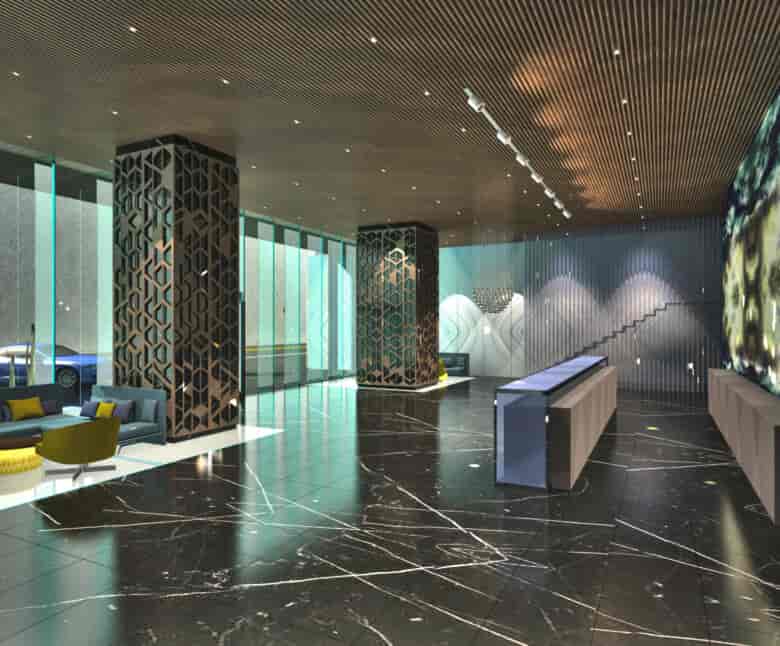 Zorlu Residence’da etkili geometri ve renk kullanımıyla, mekandaki yükseklik algısı çarpıcı bir şekle büründü. Tavandan zemine kadar uzanan alışılmadık aydınlatma kullanımı da mekandaki ölçek algısını tanımlayan bir diğer unsur oldu. Duvarlarda ve zeminlerde tekrar eden desenlerin kullanılması ve bitişik katlarda yine benzer renklerle oluşturulan bütünlük, her kata bir sanat eserinin değerini katarken, işlevsel alanları da net bir şekilde tanımlamış oldu.