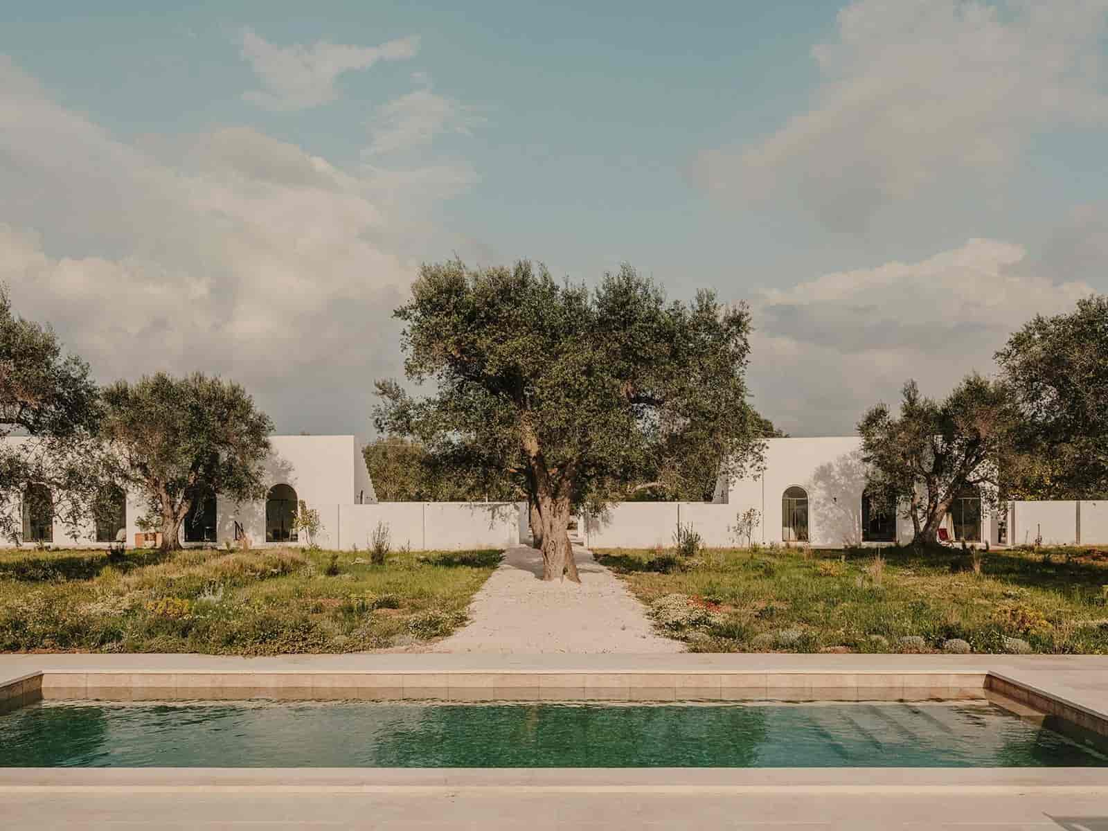 İtalya’nın Puglia bölgesi muhteşem doğası ve insanı sakinleştiren atmosferiyle başlı başına eşsiz bir lokasyon olmasının yanı sıra son yıllarda asırlık çiftlik evlerinin dönüştürüldüğü projeler ile de dikkat çekiyor. Restorasyon sürecinin ardından tamamlanan ‘Borgo Gallana’ isimli kompleks, Barselona merkezli mimarlık ofisi Studio Andrew Trotter imzası taşıyor. Oria’da, bölgenin simgesi haline gelen zeytin ağaçlarının arasında konumlanan mevcut iki çiftlik evi, proje kapsamında yenilenerek bir avlu ile birbirlerine bağlandı ve yapılara keskin hatlarıyla cephede geometrik bir etki yaratan iki adet merdiven eklendi. Eklemeler ve yeni proje ile eski kompleks her biri bir yatak odası, bir oturma ve yemek alanı, açık havada yer alan bir duş alanı, özel bir avlu ve özel bir teras içerecek şekilde üç müstakil eve dönüştürüldü.