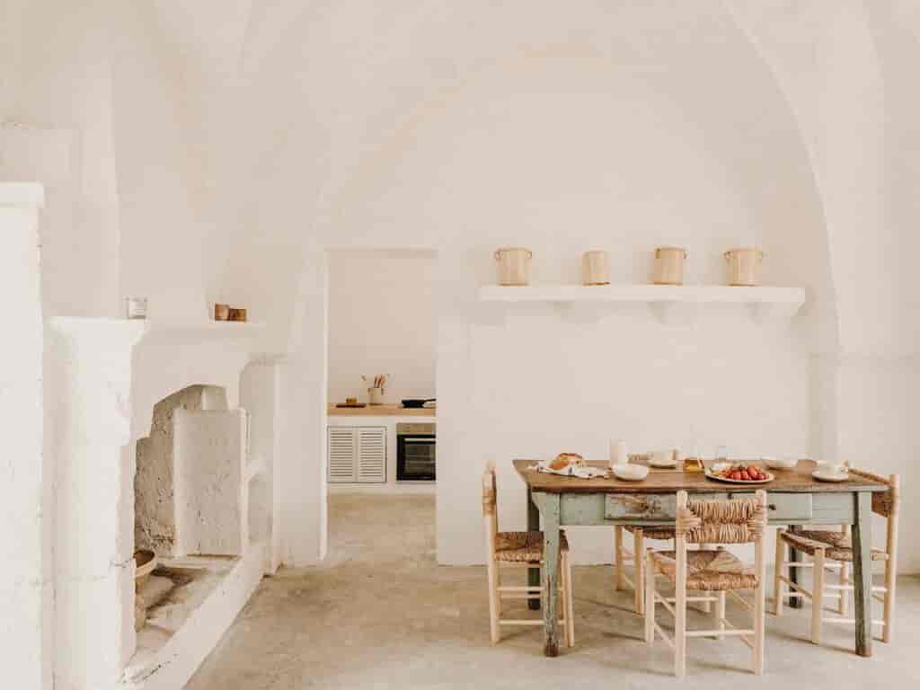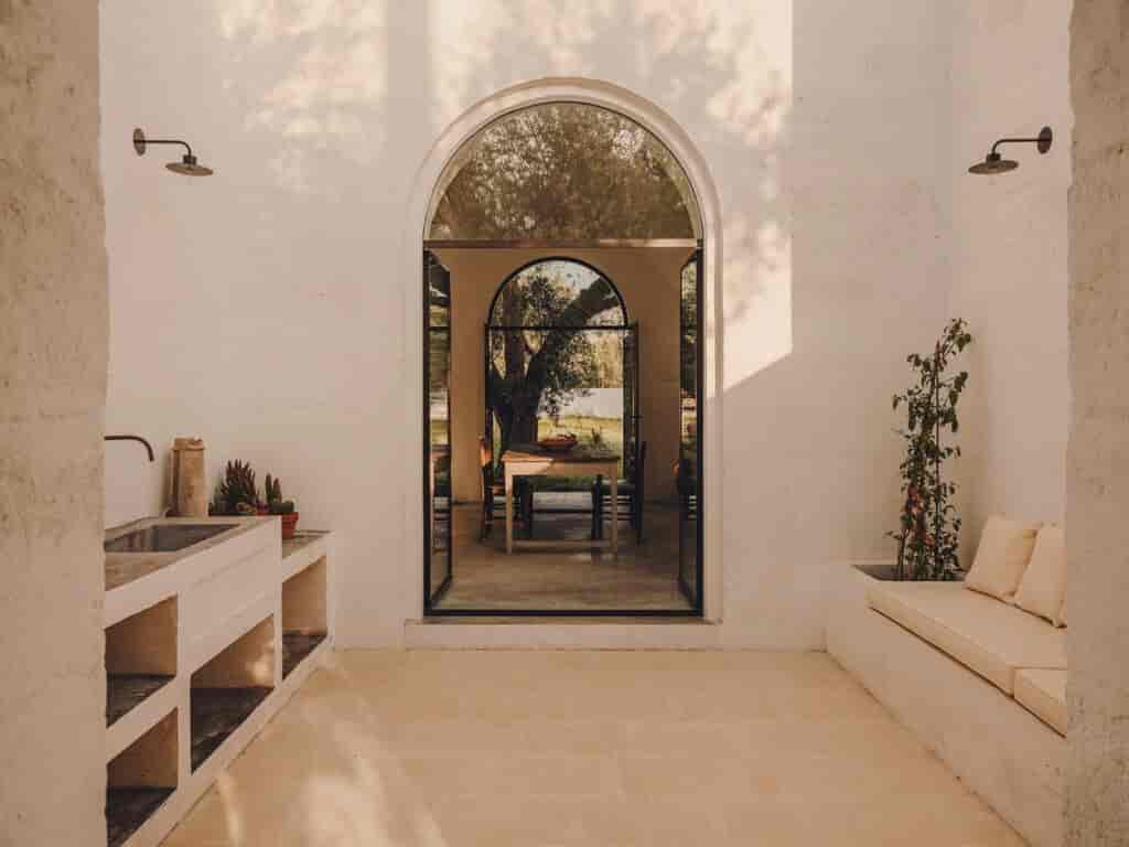 Özellikle Güney İtalya’da görmeye alışık olduğumuz el yapımı seramikler, eski mobilyalar, sade ve huzur veren iç mekanlar bu projede yeniden hayat buluyor. İç tasarımda öne çıkan ürünlerden bir diğeri ise ofisin özel olarak tasarladığı banyo lavaboları ve mutfak tezgahları. Ofis, tasarımda hiçbir noktada abartıya kaçmadan, referansını hep bölgede var olandan alarak, oldukça sade ve özgün bir şekilde iç mekanları tamamlıyor. Doğayı merkezine alan projenin çevresel sürdürülebilirlik kriterlerine göre tasarlandığını tahmin etmek güç olmasa da en büyük sürdürülebilirlik adımını var olanı yıkmadan, koruyarak ve iyileştirerek hayata döndürme kararı ile atıyor.