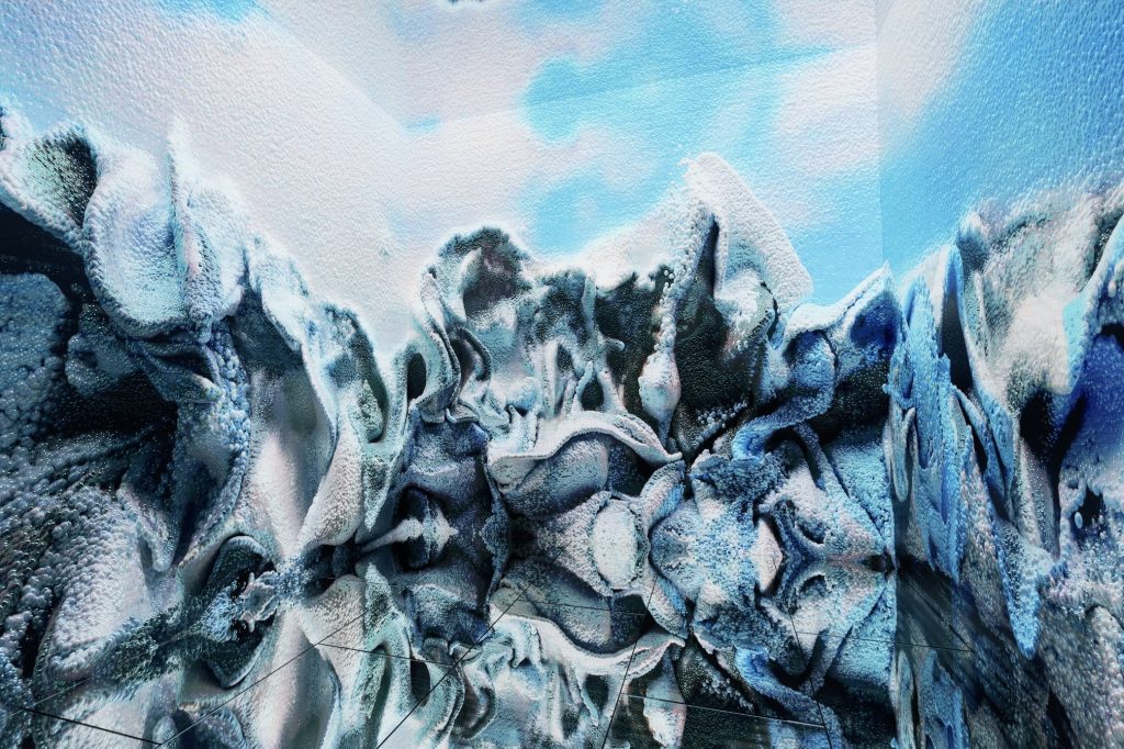 Anadol’un çevrimiçi ve kurumsal arşivlerden 100 milyondan fazla görüntü ve İzlanda, Grönland ve Antarktika’daki buzullara ait 10 milyon görselle hazırladığı veri seti, bilimsel araştırmaların ötesine geçerek, buzulların kırılganlığını vurgulayan şiirsel bir görsel deneyim yaratıyor.