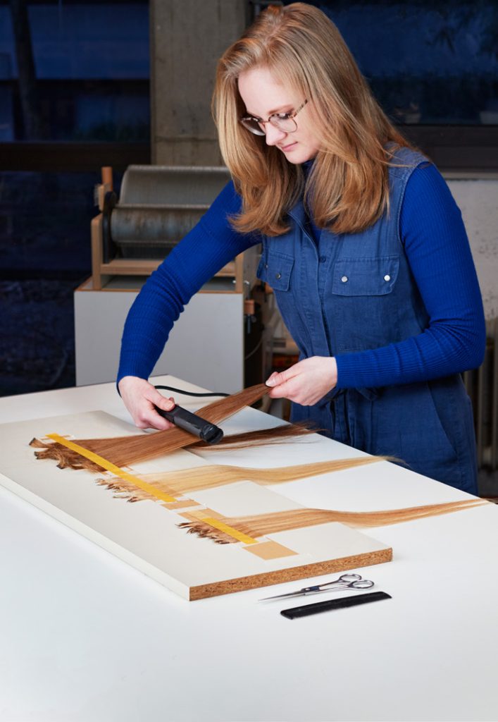 Schoorl’un çalışması, saçın atık olmaktan öte, dönüştürülebilir bir malzeme olduğunu ortaya koyuyor. Özellikle saç eklerinin uzun lif yapısından faydalanarak onları tekstile dönüştüren tasarımcı, örgü ve dokuma teknikleriyle malzemeye yeni bir işlev kazandırıyor.
