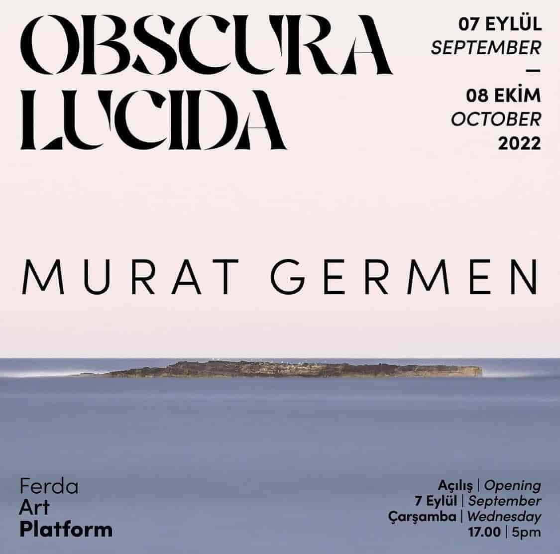 Ferda Art Platform, 7 Eylül – 8 Ekim 2022 tarihleri arasında Murat Germen’in ‘Obscura Lucida’ isimli kişisel sergisine ev sahipliği yapıyor. Sanatçının karanlık ve alacakaranlıkta uzun pozlama ile çektiği fotoğrafları, kent ile doğanın bakir ve sakin anlarını gözler önüne seriyor.