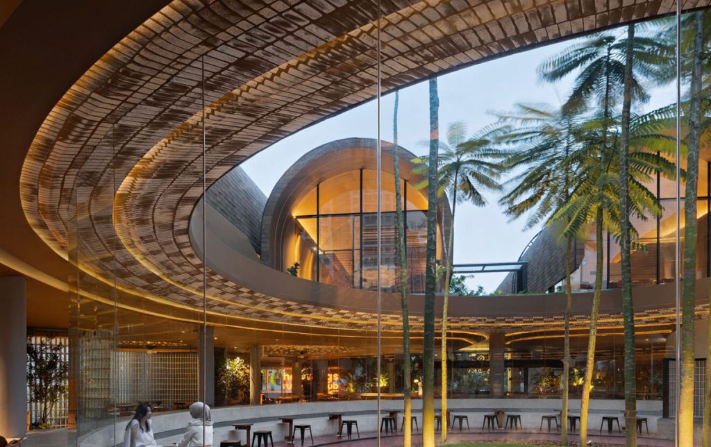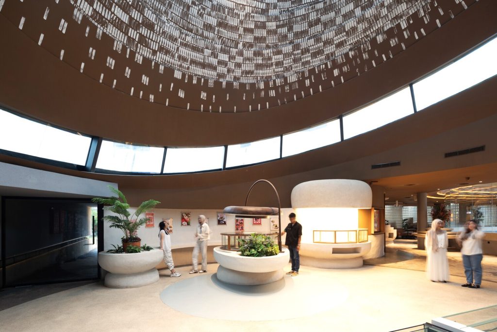 Tasarım, doğayla bütünleşen, esnek ve zaman içinde dönüşebilen bir “üçüncü mekân” fikri etrafında gelişir. Ziyaretçiler, geniş yeşil çatının gölgesinde, çok eksenli ve dolambaçlı mekânsal kurgu sayesinde Endonezya’nın tropikal ikliminden korunarak mekânı deneyimler. Geriye doğru eğimli olarak tasarlanan yeşil çatı, doğal hava sirkülasyonunu desteklerken; ön bulvar ile arka taraftaki kentsel göl arasında güçlü görsel ve mekânsal bağlantılar kurar.