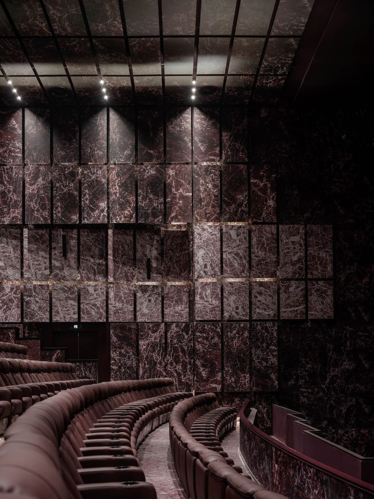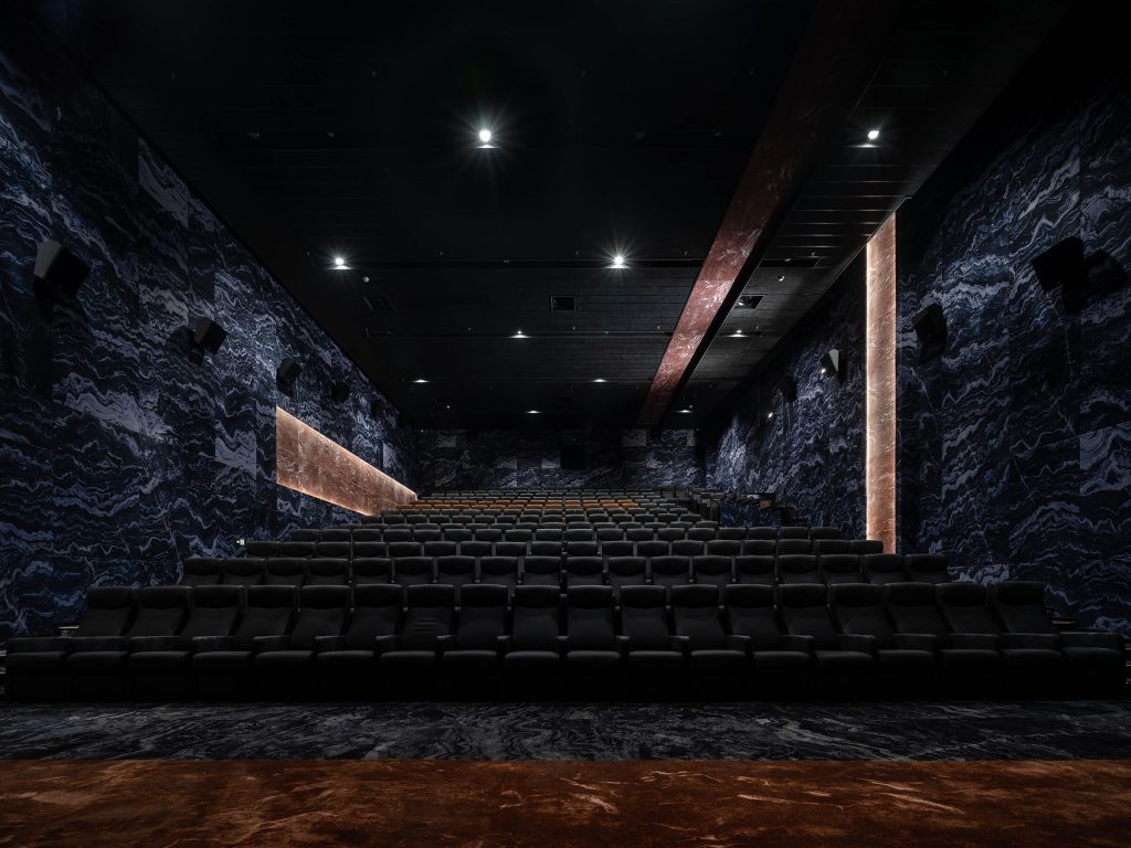 Lobi tasarımıyla uyumlu olarak ana sinema salonunda turuncu-kahverengi ve kırmızı taş desenleri dikkat çekiyor. Burada, kumaşlara işlenmiş ve baskı için önceden hazırlanmış binlerce farklı düzenleme ile taş desenleri göze çarpıyor ve doğal dokunun mekan boyunca etkili bir şekilde devam etmesi sağlanıyor. Diğer salonlarda ise koyu mavi taş ve kahverengi taş desenlerinin birleşimini görüyoruz. Bu tasarım seçimi, filmin ilettiği duyguları zenginleştirmeyi umarak şehrin hareketliliğini ve tutkusunu deneyime entegre etmeyi amaçlamaktadır.