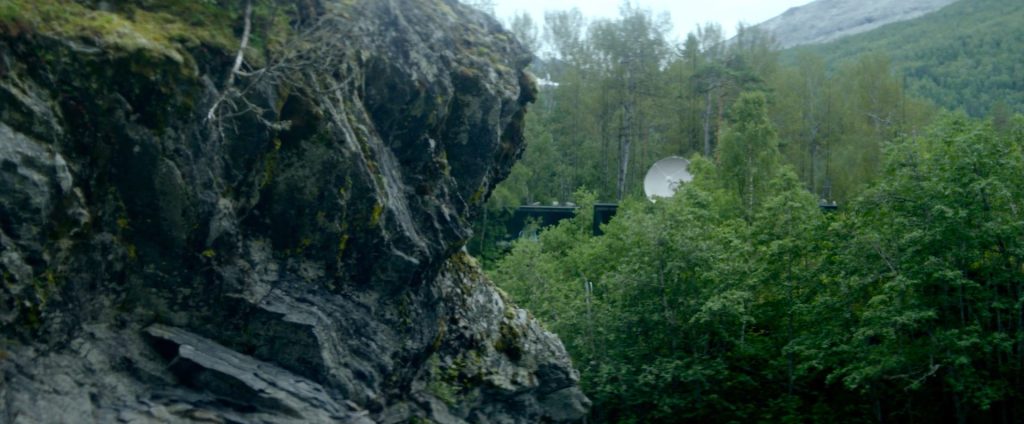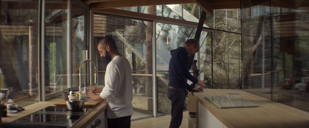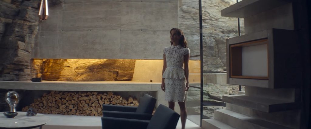 Caleb, yarışmayı kazandıktan sonra özel bir uçakla Nathan’ın evinin bulunduğu araziye götürülür. Telefonların çekmediği, tamamen ormanın içinde olan bu yere bırakılınca, başta karakterin yaşadığı tedirginliği görürüz. Belirsizlikle ilerleyen Caleb, ormanın derinliklerine gizlenmiş, neredeyse fark edilmeyecek olan o evi görür. Doğaya minimum müdahaleyle yerleştirilen bu yapı, ilk bakışta izleyiciye yalnızlığı ve izole olma durumunu hissettirir.