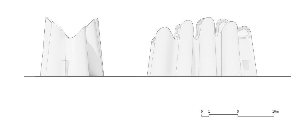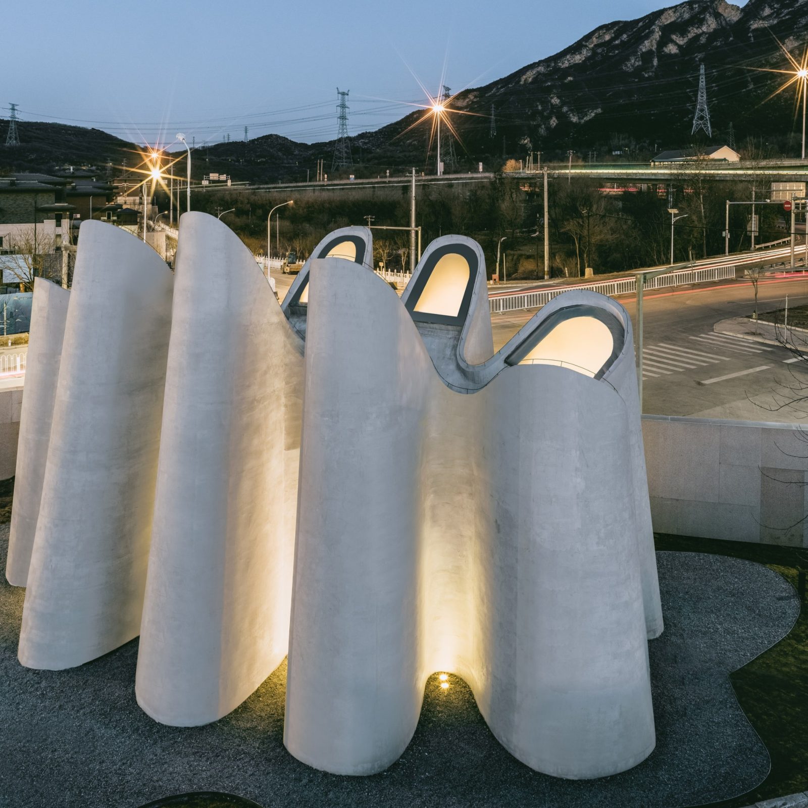 Beijing’in Mentougou bölgesindeki popüler bir turistik yer olan Moofland’da yer alan Sky Light Umumi Tuvalet, People’s Architecture Office tarafından tasarlandı. Sadece kadınların ve çocuklu annelerin ihtiyaçlarını karşılamak üzere tasarlanmış yapı, heykelsi ve içe dönük kıvrımlı formuyla benzersiz ve yenilikçi bir tasarıma sahip. Her bir bölmenin yüksek tavanındaki ışık kuyusu, konik iç mekana güneş ışığını alarak yapının organik şeklini vurguluyor.