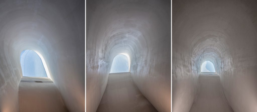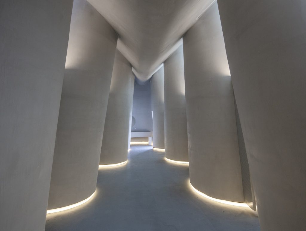 Işık ve gölge oyunu, mekanın eğrisel kıvrımları boyunca eklemlenerek devam ediyor.