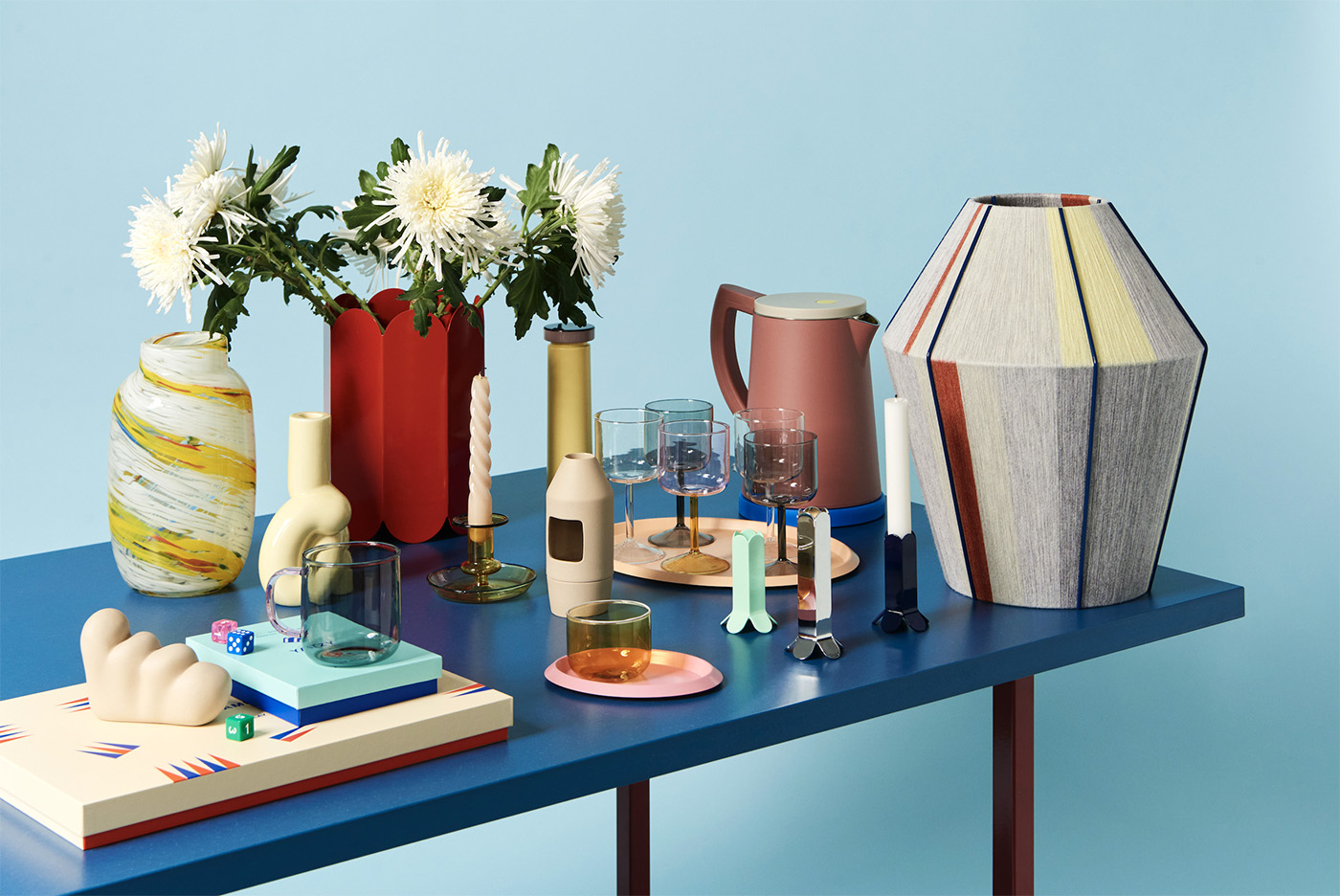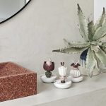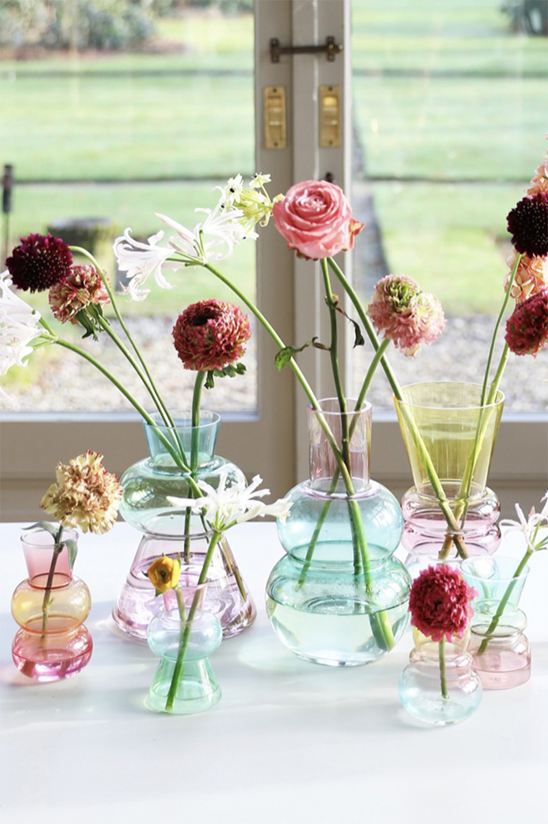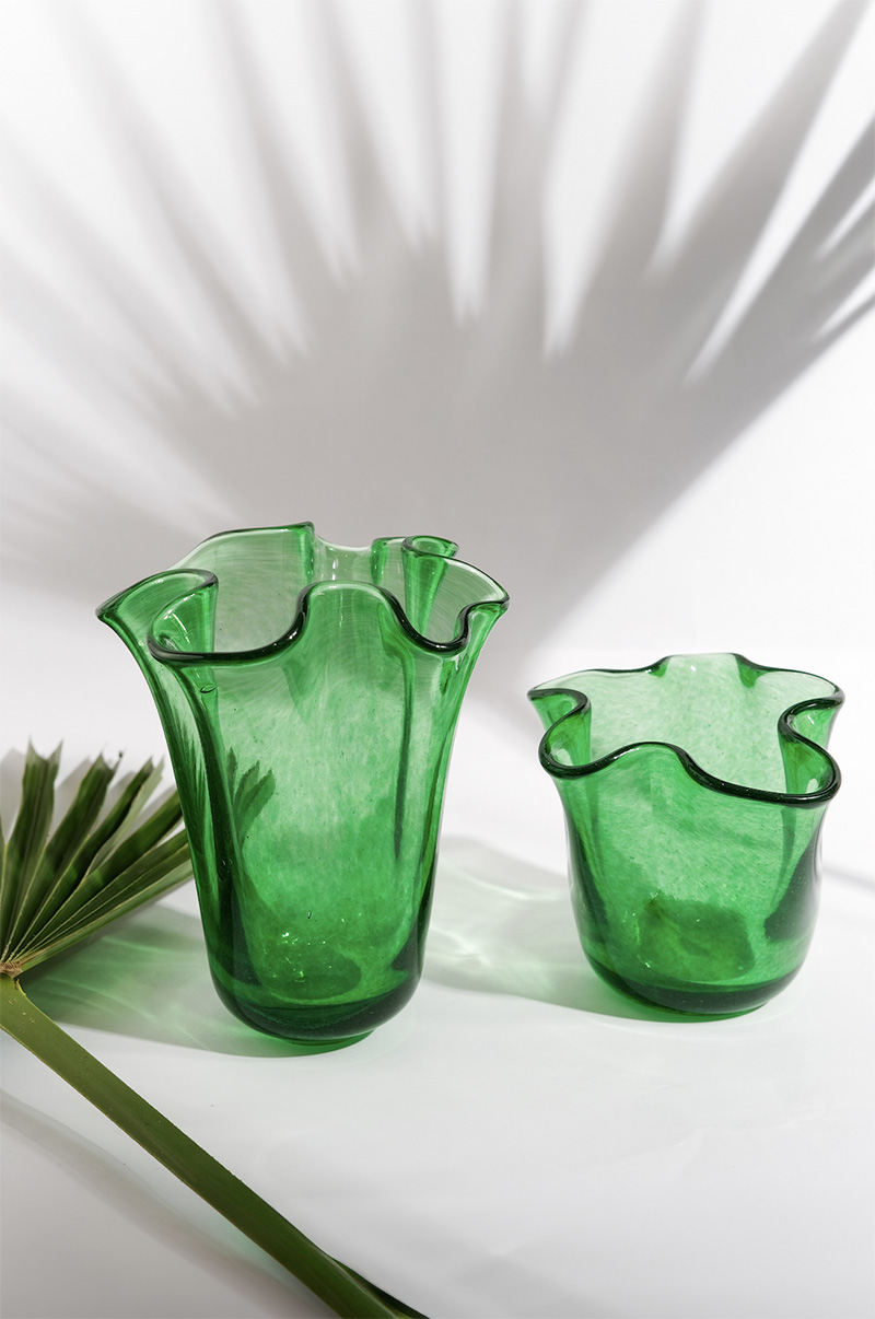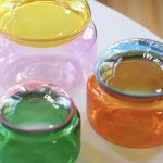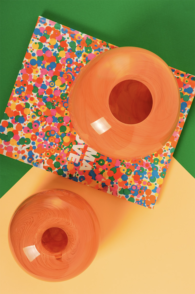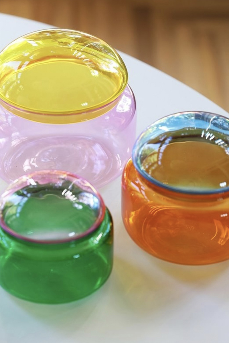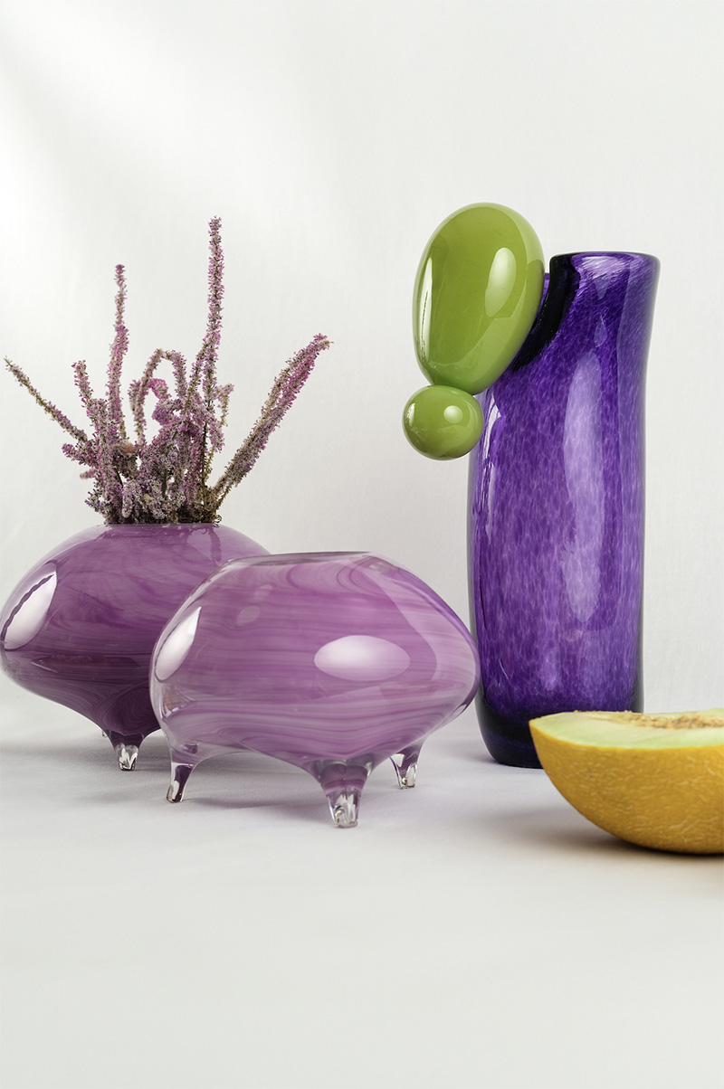 Mimar Ceyda Özsoy’un kendi markası Amorphe by Studio Arc-en-ciel tasarımları da sergilenen ürünler arasında yer alıyor: “Amorphe, tamamen benim tasarlayarak ürettiğim üfleme cam vazo ve aksesuarlardan oluşuyor. Tasarımlarımda keskin hatlardan ve belirli formlardan kaçınarak camın amorf hallerini keşfetmeye odaklanıyorum. Her bir objenin ölçü ve form açısından tamamen bağımsız ve tek olması benim için önemli bir kriter. Üretim süreci ise tasarımın ayrılmaz bir parçası. Markanın isminden de anlaşılacağı gibi, tasarımlar üretim aşamasında birçok kez şekil değiştiriyor. Bu nedenle sabit kalıplara bağlı kalmıyorum. Üfleme cam sanatında üretim esnasında yapılan küçük dokunuşlar, bazen modelin tamamen farklı bir forma evrilmesine neden olabiliyor ve tasarım sürecine spontane bir dinamizm katıyor”.