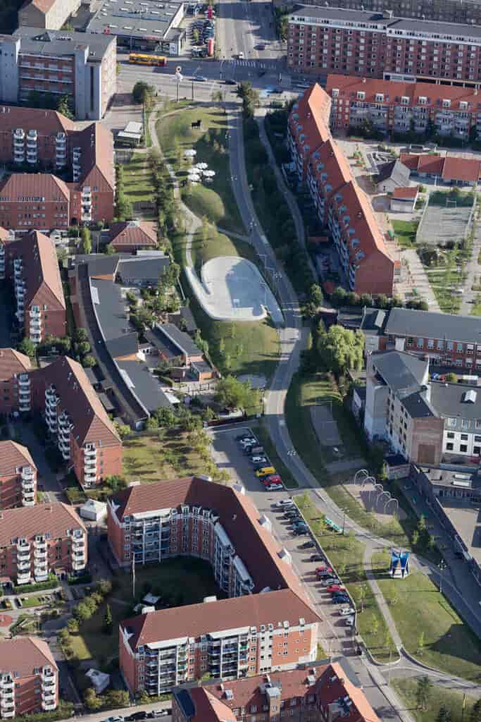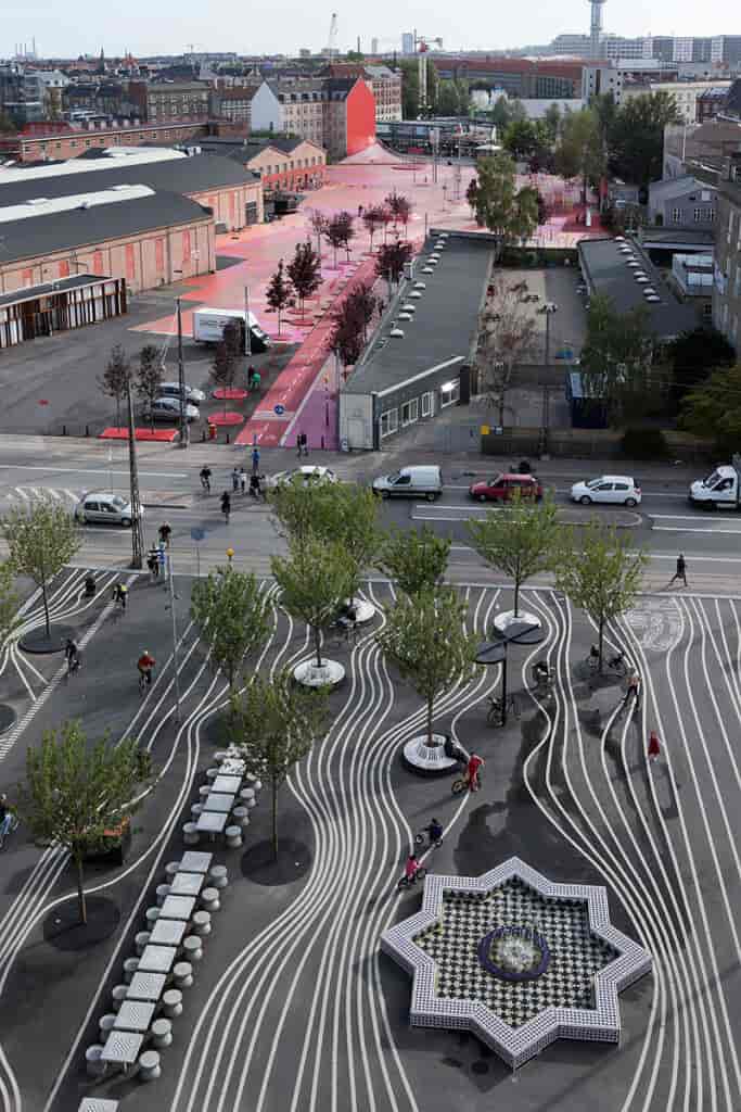 Danimarka’nın etnik çeşitliliği en fazla olan bölgelerinden birinde yer alan 1 km uzunluğundaki kamusal parkın adı Superkilen. Superkilen, dünyaca ünlü mimarlık ofisi BIG, peyzaj mimarlığı konusunda uzmanlaşmış ofis Topotek 1 ve Superflex sanatçıları arasındaki yaratıcı işbirliğinden doğan etkileyici bir proje. Bu sıra dışı mekanda alışılagelmişten çok farklı bir park yaratan ekip tasarımlarına çeşitliliği destekleyici birçok unsuru dahil etmiş. Alanda kullanılan neon işaretler Rusya ve Katar’dan, piknik masaları Ermenistan’dan, pinpon masaları ise İspanya’dan. Farklı ülkelerden gelip aynı mekanda buluşturulan objeler çevrede oturan insanların bağlı oldukları farklı kültürleri temsil ediyor.