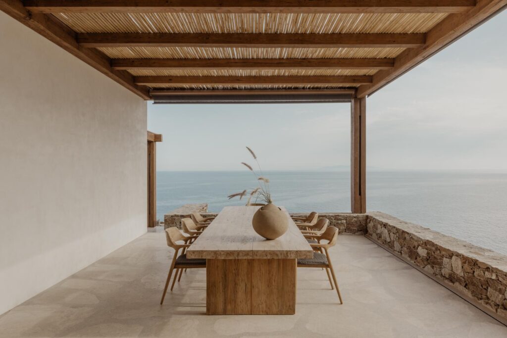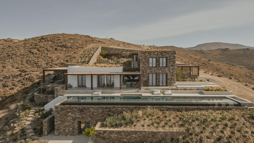 Atina merkezli mimarlık stüdyosu Block722 tarafından minimalist Ege köylerinin tipolojisinden esinlenilerek tasarlanan Viglostasi Residence, Kiklad Adaları’ndan Syros’ta konumlanıyor. Müşteriler birçok farklı adayı deneyimledikten sonra hayallerindeki tatil evini hayata geçirmek için bu lokasyonu seçerek mimarlardan Yunan Adaları’nın geleneksel mimari formlarını merkezinde tutan bir ev talep ediyor. Block722 ise bu talebe doğal malzemelerin, nötr renklerin ve sadeliğin ön plana çıktığı tasarımıyla etkileyici bir yanıt veriyor.