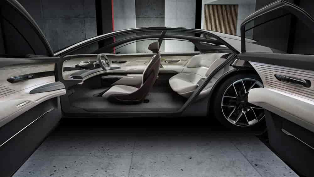 Şık kapılara ve dört koltuğa sahip kaslı bir GT olan Grandsphere, önde konumladığı üst seviye koltuk tasarımıyla, lüks executive sedan paradigmasını alt üst ediyor. Tasarımcılardan, uzun mesafeli uluslararası uçuşlarda birinci sınıf kabinlerden esinlenerek modelleme yapmaları ve lüks bir kruvazör oluşturmaları istenmiş. Ancak Audi’nin iç tasarımcısı Maksymilian Nawka ve ekibi bu fikri daha da ileri götürmüş.