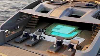 Yat içerisinde 100 metrekarelik havuzlu bir alan bulunuyor. Spor salonu ve yat boyunca denize doğru açılan yan cepheleri de dahil olmak üzere 60 metrelik bir süper yattan beklenebilecek tüm olanaklara sahip bulunuyor.