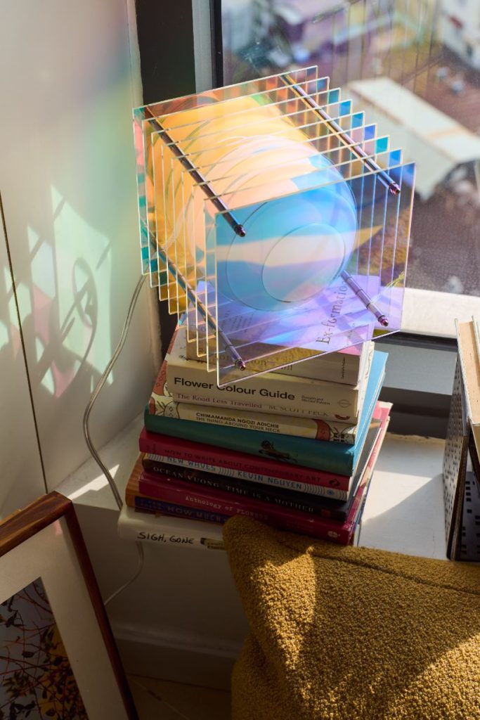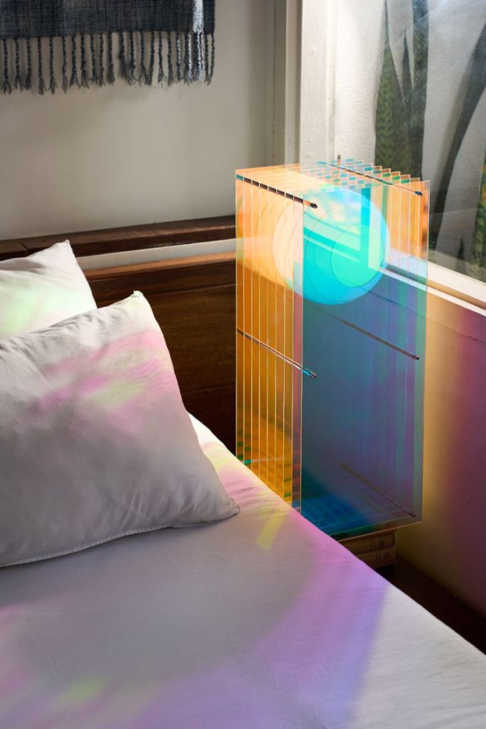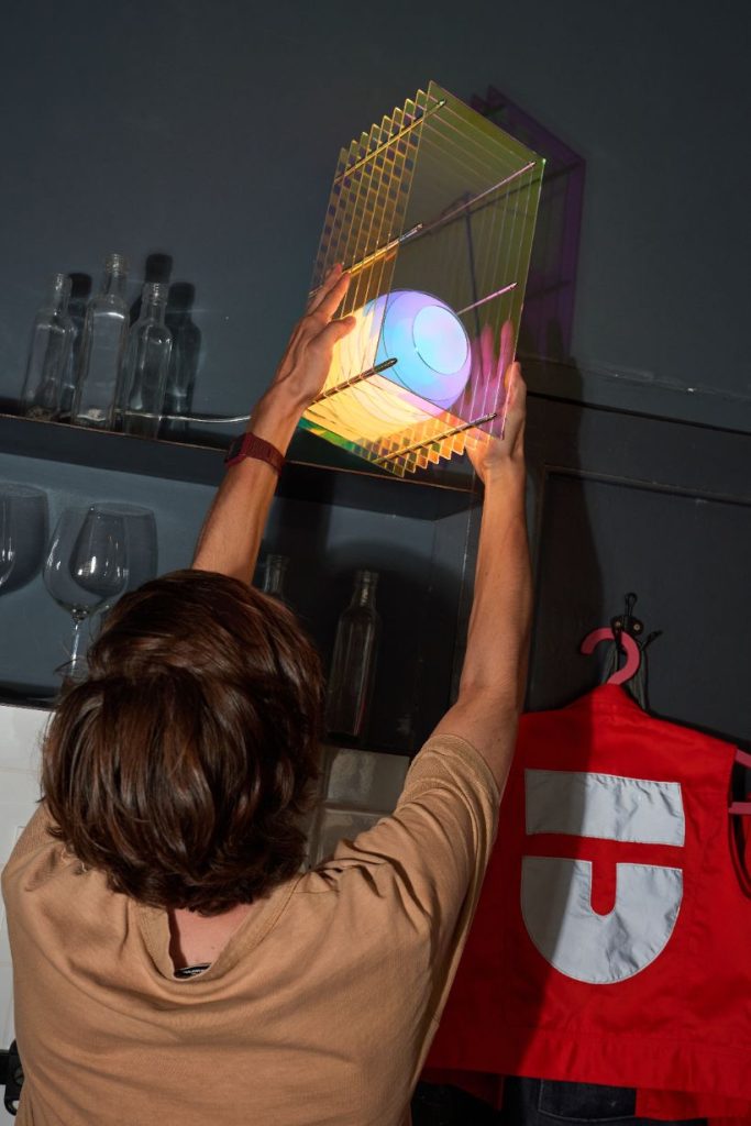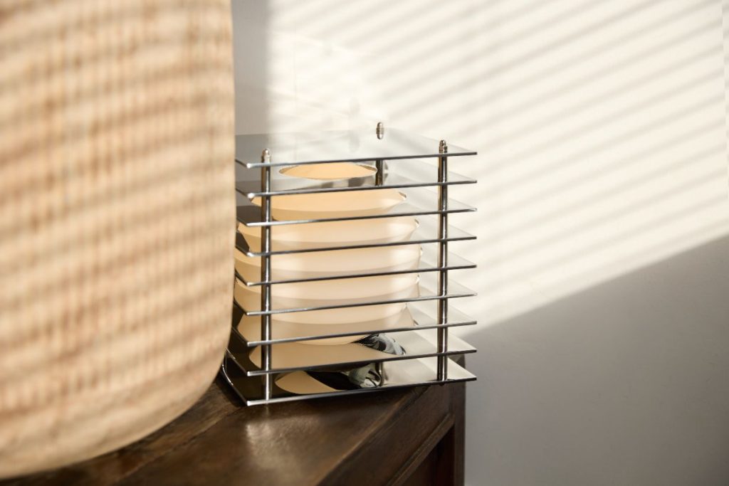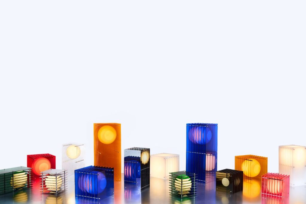 Katmanlar arasındaki boşluklar, paslanmaz çelik ayırıcılarla bir ritim oluştururken, opak cam küre bu sert geometriye yumuşak bir ışık merkezi ekliyor. Nesne bir yandan şeffaflık ve boşluk hissi taşırken, diğer yandan heykelsi bir ağırlık hissediliyor. Bu koleksiyonun en güncel yorumu olan Dreamy Lớp, iridesan (ışığa göre renk değiştiren) akrilik yüzeylerle bu bu ışık ve malzeme oyununu daha da ileri taşıyor.