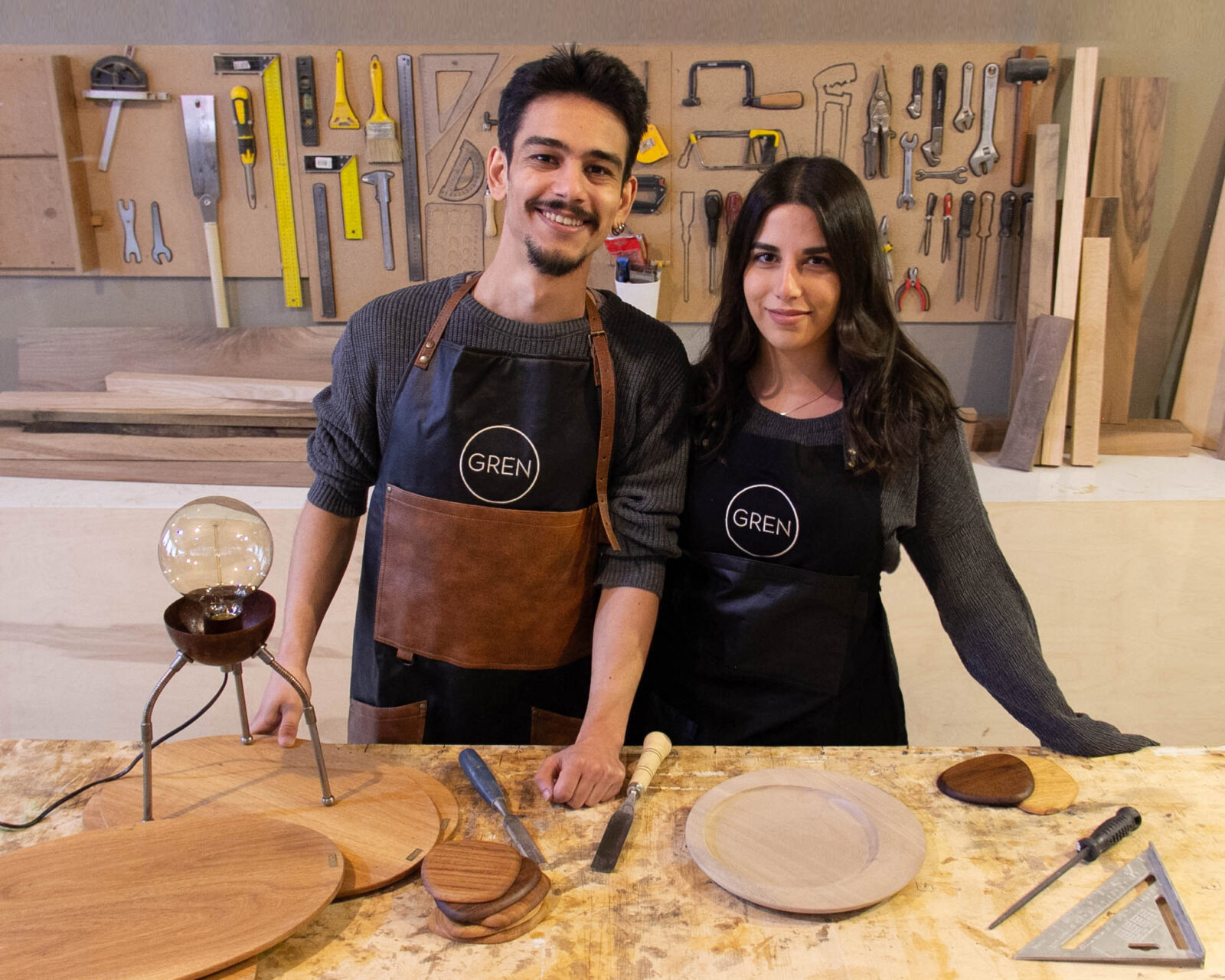 Endüstriyel tasarımcılar Ece Kaya ve Cüneyt Ahmet Yapalak’ın kendi ürünlerini tasarlamaya ve imal etmeye karar vermeleriyle kurdukları ev dekorasyon markası GREN, ürün tasarımında ergonomiyi ve kullanıcı deneyimini ön planda tutarak, estetiği de bir işlev olarak görmekte ve bu prensiple 2018’den itibaren tasarım stüdyosu ve butik üretim atölyesi olarak faaliyet göstermektedir. Masif ahşaba duyulan ortak tutkuyla yolculuğuna başlayan marka, farklı malzemelerin dahil edilmesiyle ürün yelpazesini genişletmekte ve hem üretim hem de tasarım süreçlerini üstlendiği özgün ev dekorasyon ürünleri ortaya çıkarmaktadır. Doğaya ve insana saygılı ömürlük ürünler üretmek hedefine bağlı kalarak kaliteli malzemeler ve el işçiliği ile tasarımlarını hayata geçirmeye devam etmektedir.
