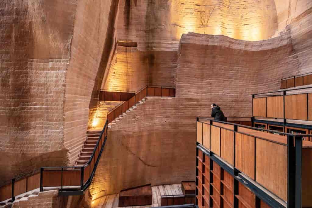 38 metre yüksekliğe sahip bazı mekanlar güçlü akustik özellikleri sayesinde müzik performans alanları olarak kullanılıyor. Merdivenler, ziyaretçilere yükseklik değiştikçe beklenmedik manzaralar sunuyor. Tercih edilen ahşap mobilyalar, mekanın doğal ve sakin atmosferiyle uyumlu bir birliktelik ortaya koyarken insanlara dinlenebilecekleri ve etkileşim kurabilecekleri alanlar yaratıyor. Kimi mekanlar kayalara oyulmuş benzersiz formları ile öne çıkıyor ve yükseklik farkı sebebiyle merdivenden erişilebilen yollar ile birleşiyor.