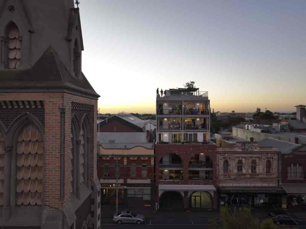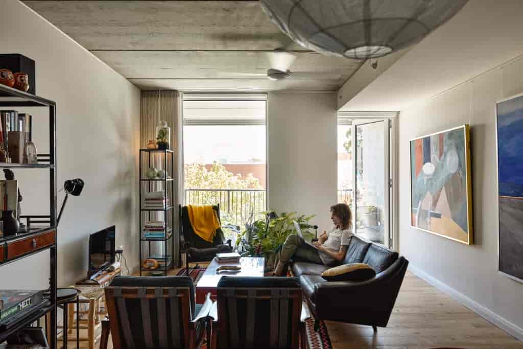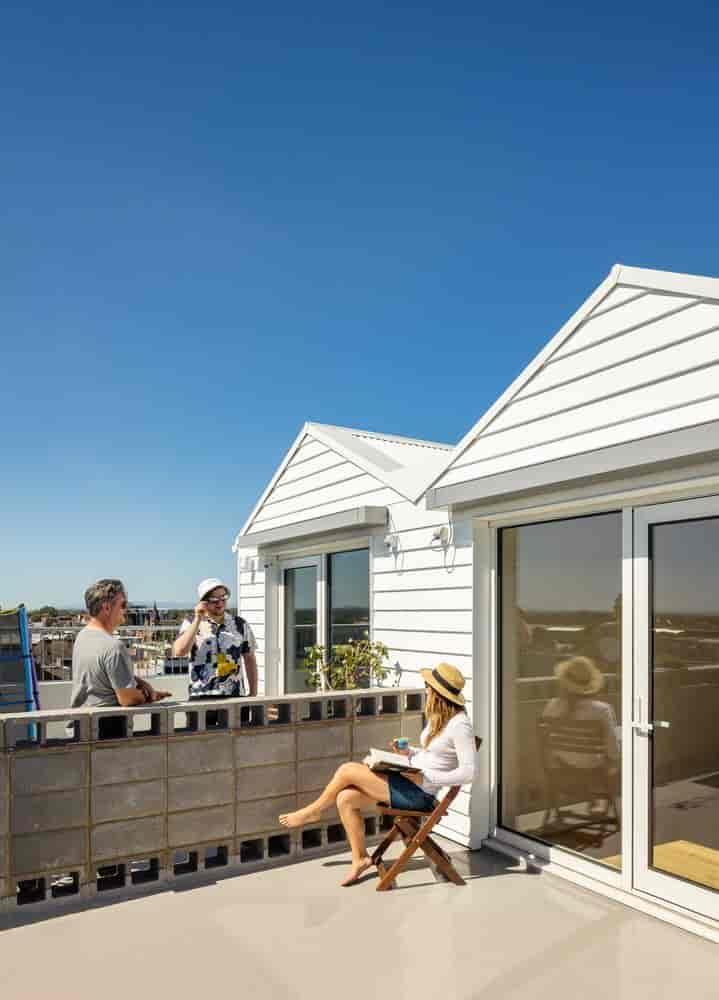 Austin Maynard Architects’in büyüyen iklim krizi karşısında eşitlikçi, uygun maliyetli, sağlam ve toplumu merkezde tutan bir konut tasarlama düşüncesiyle hayata geçirdiği Terrace House (Teras Ev), birçok açıdan oldukça dikkat çeken bir proje. Öncelikle pek alışılagelmedik şekilde projenin maliyetlerini Austin Maynard Architects’in geçmişteki müşterileri, çalışanları ve iş birlikçileri karşılıyor ve bir araya gelen bu yatırımcılar topluluğu paralarını bir nebze riske atarak çevresel, sosyal, nitelikli ve finansal açıdan sürdürülebilir bir konut prototipi yaratmayı hedefliyor. Melbourne Brunswick’te konumlanan Terrace House; 20 konut, 55 bisiklet parkı ve zemin seviyesinde üç ticari alandan oluşuyor. Yapı sürdürülebilirlik söylemini destekleyecek şekilde hiç fosil yakıt içermeyecek şekilde planlanıyor.