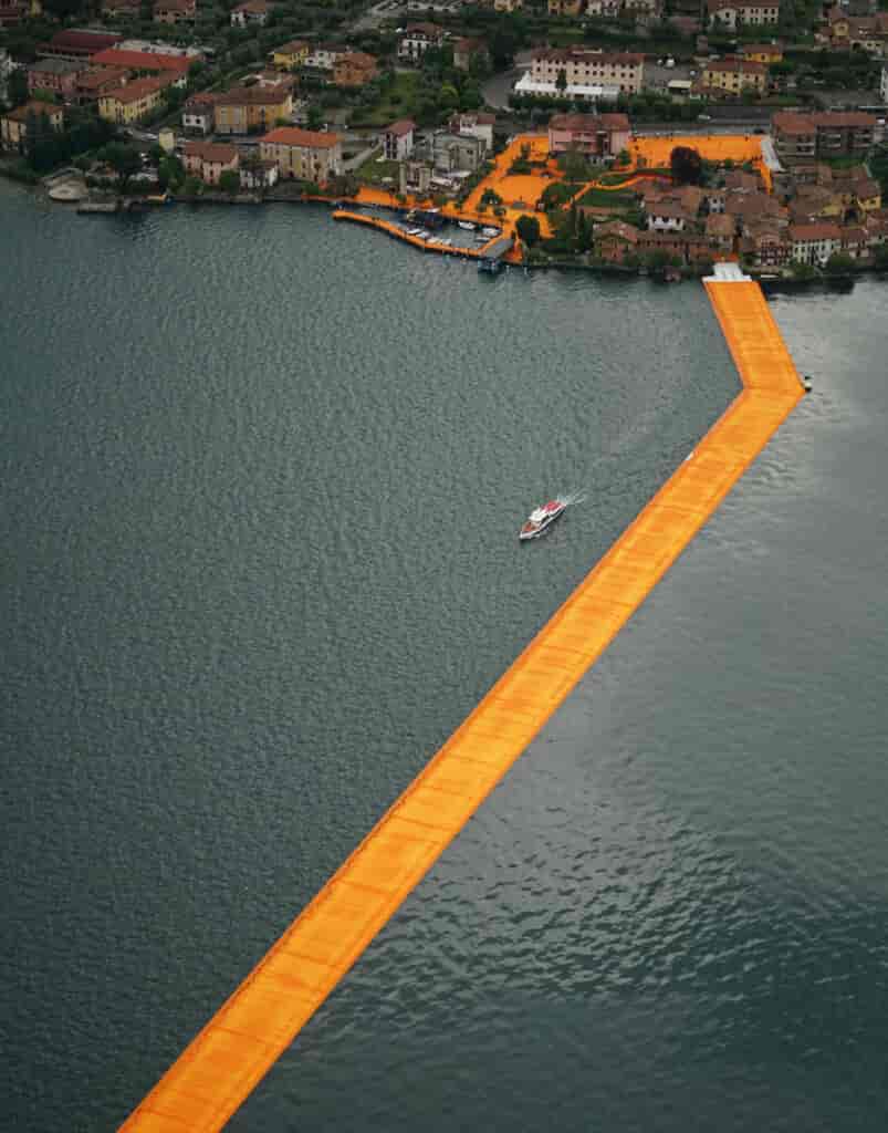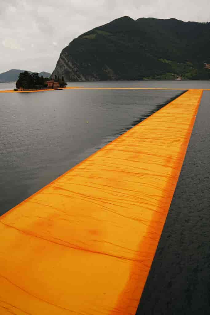 Geçtiğimiz günlerde hayatını kaybeden dünyaca ünlü Bulgar sanatçı Christo’nun 2016 yılında hayata geçirmiş olduğu ‘The Floating Piers’ belki de son yılların en etkileyici enstelasyonlarından. İtalya’nın Iseo Gölü’nde gerçekleştirilen geçici proje gölün üzerine yerleştirilmiş safran renkli bir yaya yolu ile adaları birbirine bağlıyor. Tam adı Christo Vladimirov Javacheff olan sanatçı 2009 yılında hayatını kaybeden Fransız eşi Jeanne-Claude ile gerçekleştirdikleri büyük ölçekli kumaş enstelasyonları ile tanınıyor.