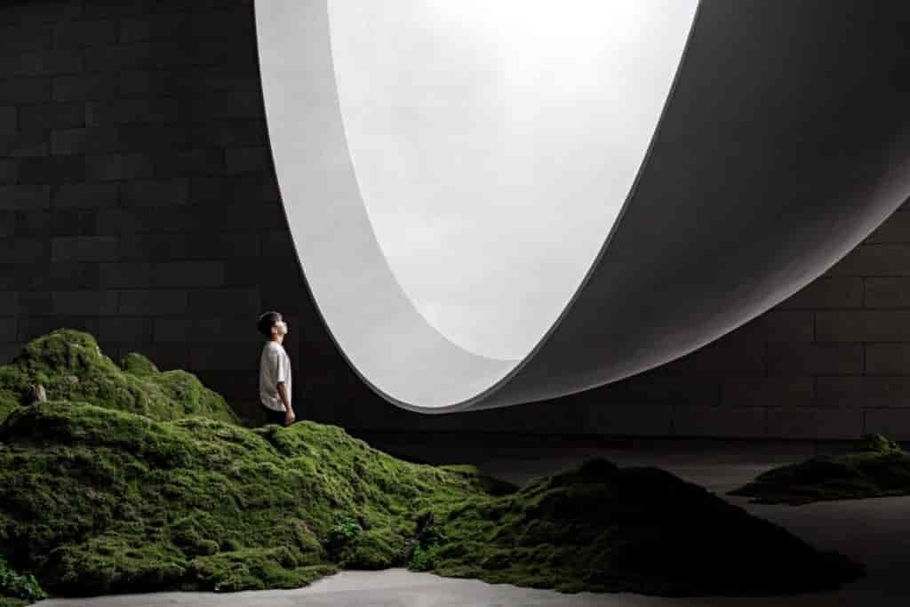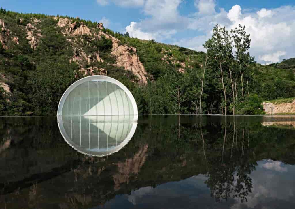 Syn Architects, Çin’de Tai Dağı’nın etkileyici manzarasına karşı konumlanan bir şapel tasarladı. ‘Hometown Moon’ isimli proje; doğayı, mimariyi ve maneviyatı odağına alıyor. Yarım daire formlu cam cephesi ve çevresindeki geniş su birikintisinin yansıtıcı etkisi yapıya gerçeküstü bir algı kazandırıyor ve yapı uzaktan batmakta olan bir ayı çağrıştırıyor. Hometown Moon’un proje direktörü Zou Yingxi aynı zamanda tören salonu işlevine sahip olan bu etkileyici tasarımı ‘asla batmayan bir ay’ olarak tanımlıyor ve projeye simgesel bir anlam yüklüyor.