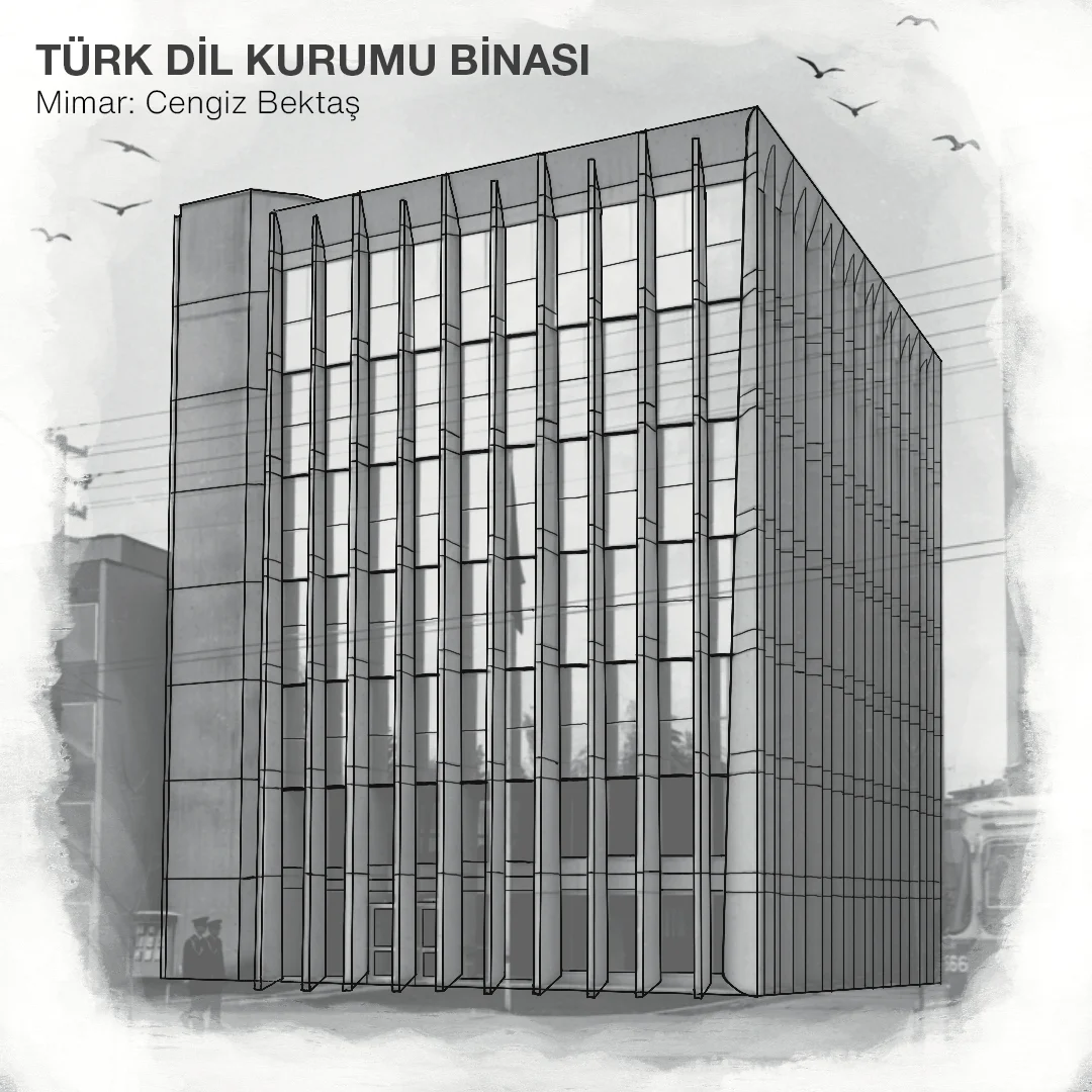 Mimar, sanatçı, şair-yazar, öğretmen, gezgin gibi birçok ünvanı 86 yıllık ömrüne sığdıran Cengiz Bektaş’ın en meşhur yapılarından olan Türk Dil Kurumu, Cumhuriyet döneminin de en önemli yapılarından biri olarak kabul ediliyor. 1988’de Ulusal Mimarlık Ödülleri Yapı Dalı Ödülü’ne layık görülen bina, Bektaş için edebiyatçı olması vesilesiyle ruhunu tam kavrayabildiğindendir belki ayrı bir yere sahip olmuş hep. Özetle Bektaş’ın kişiliğiyle ve yaşantısıyla oldukça örtüşen ve hikayesi de olan bir yapı aslında TDK binası. Bektaş’ın Türk Dil Kurumu ile ilk münasebeti mimari proje vasıtasıyla değil bir diğer tutkusu olan yazarlık sayesinde oluyor. Bektaş’ın 1967 senesinde Dost Yayınları’ndan çıkan ‘Mimarlıkta Eleştiri’ kitabı 1968 yılında Türk Dil Kurumu Deneme Ödülü’ne layık görülüyor. Kurum, bu ödülle beraber TDK’nın bir üyesi olan Bektaş’tan kullandıkları binanın yetersiz kalması sonucu ek bir bina tasarlamasını talep ediyor. Bektaş, kurumla kurduğu duygusal bağlar sebebiyle talebi – bir mimari projeden fazlası olarak görmesi sonucu – ilk başlarda reddetmiş olsa da sonradan ikna oluyor ve Türk mimarlığının simgelerinden biri haline gelecek o etkileyici yapıyı tasarlamaya başlıyor. Bektaş başlarda yaşadığı çekinceyi Tuğçe Kaplan’ın Salt Araştırma için yaptığı röportajda şu sözlerle dile getiriyor: “Türk Dil Kurumu benim kişisel korkumdu çünkü bütün sevdiğim insanlar orada üyeydi. Lisedeki edebiyat hocamdan, Dağlarca’ya [Fazıl Hüsnü] –ki o benim şiir babam diye saydığım adamdır–… Ya orada başarısız olursam?…”