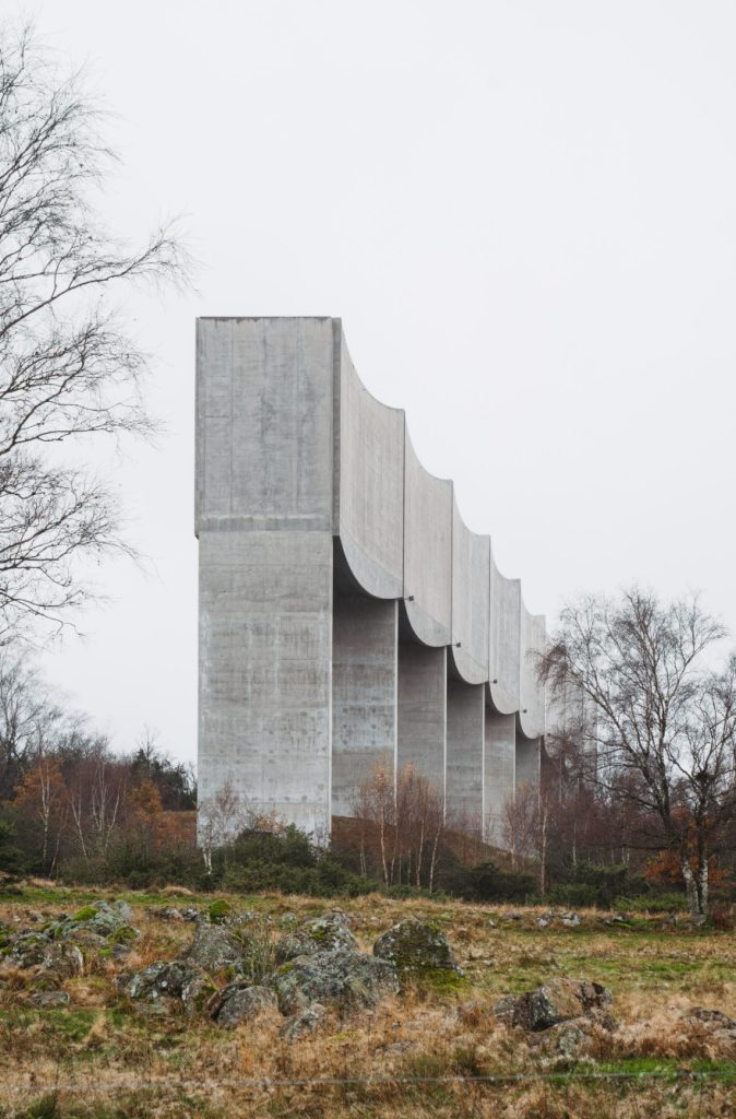 Våga, betondan yapılmış dalgalı bir rezervuara sahip olup, dokuz ince sütun üzerinde yükseliyor. Bu yapının yatayda uzanan formu, Varberg’in kıyı manzarasına saygı gösteriyor ve dalga şeklinde tasarlanmış olması, sadece görsel bir etki yaratmakla kalmayıp, yapının günün farklı saatlerinde ve farklı bakış açılarından her defasında yeni bir görüntü sunmasını sağlıyor. Betondan yapılan yapının her bir detayı, harmonik bir izlenim oluşturacak şekilde titizlikle işlenmiş.